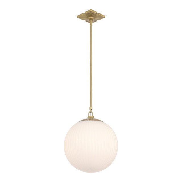 Victoria Pendant 14", Aged Brass and Opal Ribbed Glass