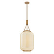 The Yuma Pendant 14" redefines the classic lantern through a refined balance of organic texture and polished hardware. An elongated cream milk glass shade serves as the focal point, emitting an atmospheric glow that brings a soft, inviting warmth to larger interior volumes. The design is elevated by a Patina Brass frame featuring hand-wrapped rattan accents, adding a layer of artisanal craft and tactile depth to the grand vertical silhouette. This versatile statement piece pairs a sophisticated metallic finish with natural materials, making it a perfect addition to entryways, dining areas, or grand transitional spaces.
