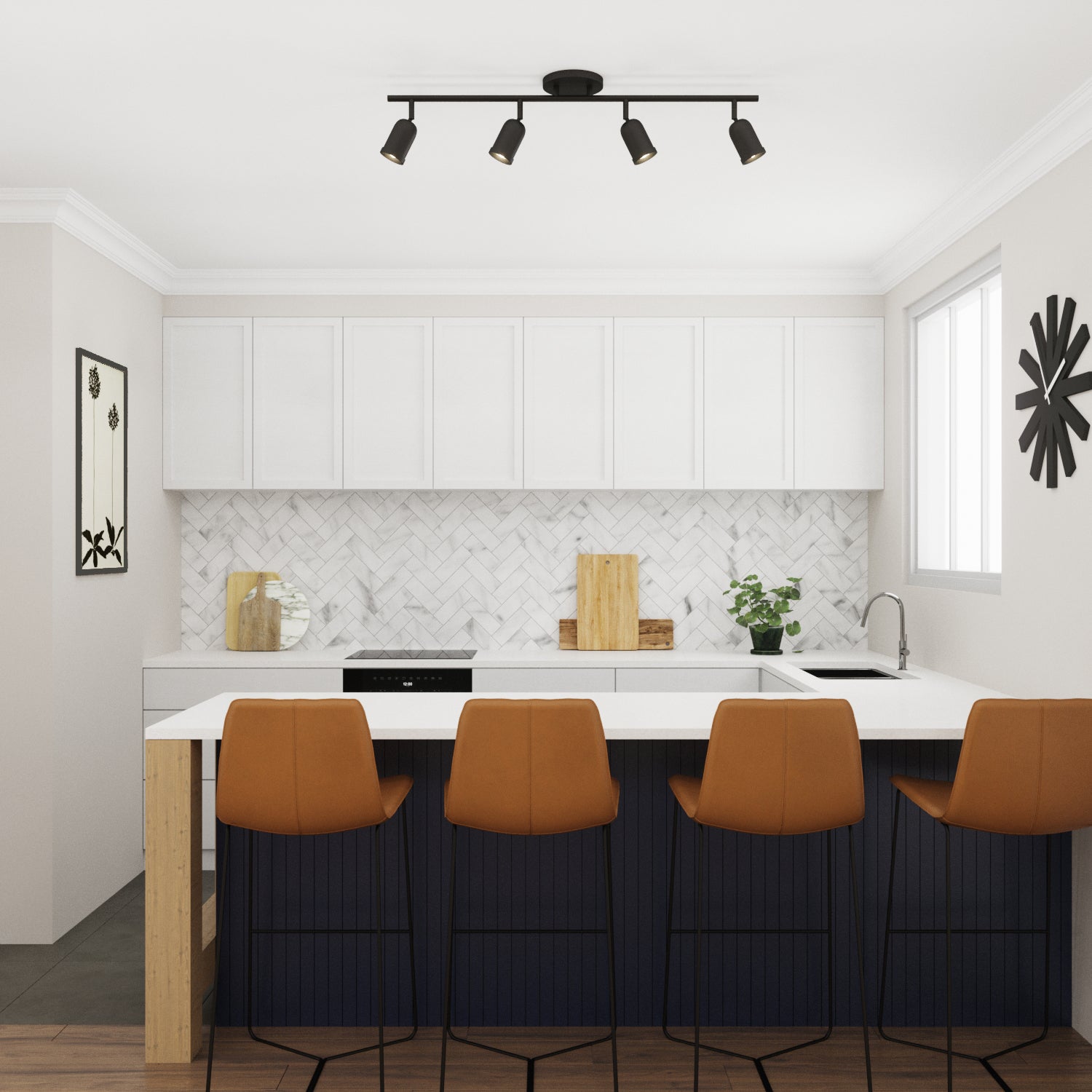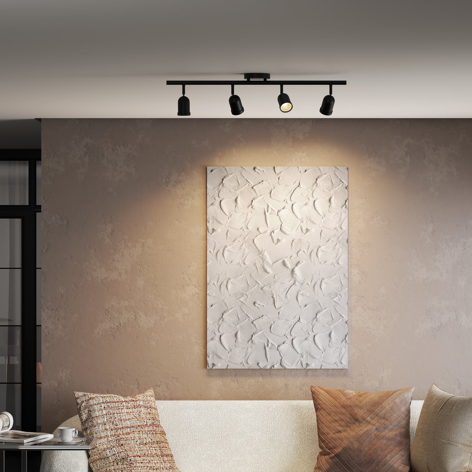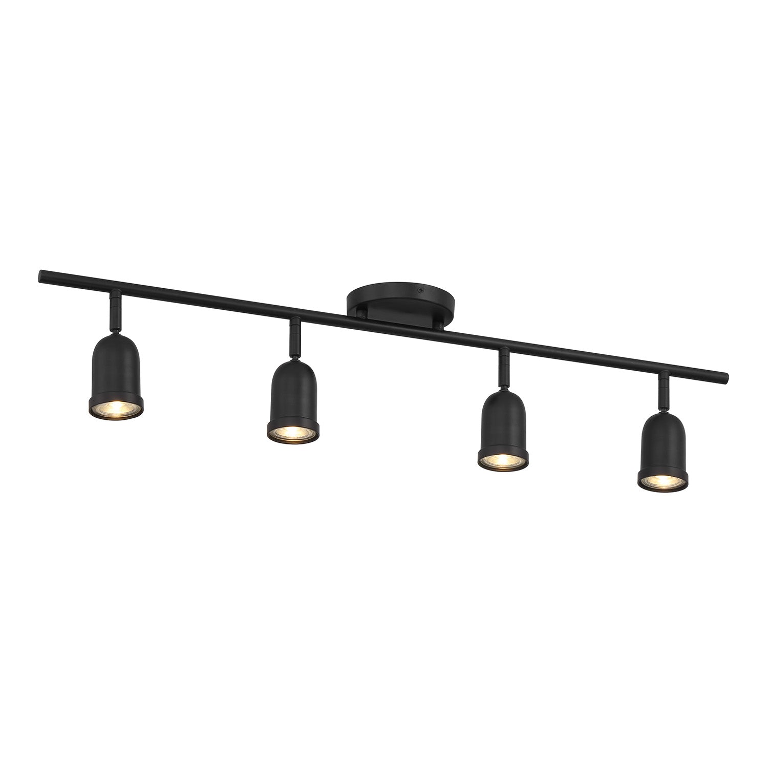 The Bixby 4-Light LED Fixed Track Light is a modern industrial take on a classic functional ceiling light fixture. The four sockets are fixed across a 32" track light bar, attached to a matching canopy. The powerful GU10 LED light bulbs come included, and provide a cheerful, bright light measuring a total of 1680 lumens. A striking matte black finish, flexible swiveling heads, and dimming capability make this ideal as indoor spot lights; versatile enough to be placed nearly anywhere. This incredibly adaptable fixture can be mounted as a flush mount ceiling light or as a vanity wall light. Install in hallways, bathrooms, or in your living room or bedroom. Adjust the direction of the heads fixed to spotlight wall art or direct additional visibility to whatever corner that needs a little illumination.