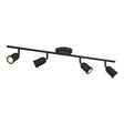 • One modern track light constructed of sturdy steel and finished in chic matte black, featuring four adjustable heads with swiveling necks for precision lighting