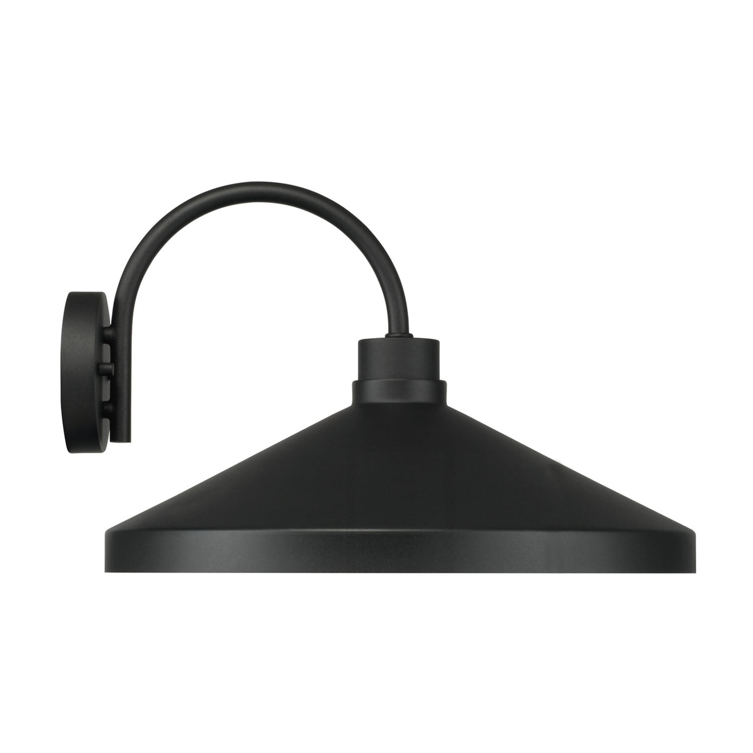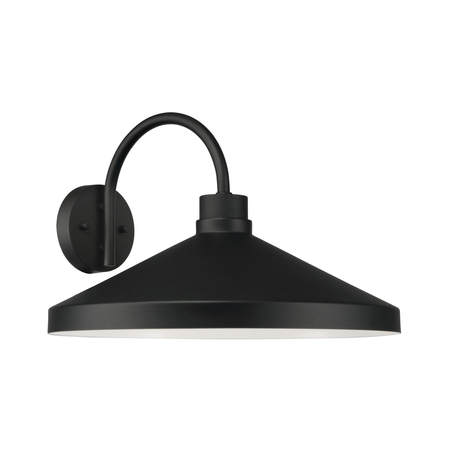 Vintage farmhouse charm meets modern refinement in the Eton Large Outdoor Wall Light, reimagining the classic barn light style with contemporary sophistication. This striking fixture features a wide conical shade suspended from a gracefully curved gooseneck arm, creating the iconic barn light silhouette that's both functional and stylish. The rich matte black exterior finish contrasts beautifully with the crisp white interior, maximizing light reflection while adding visual interest. This timeless barn light style brings nostalgic appeal to any outdoor space, perfect for adding character to porches, patios, or entryways with its authentic heritage styling.