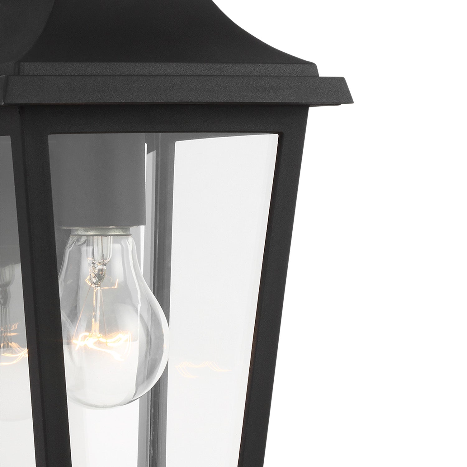 The Pembroke Extra Small Outdoor Wall Light makes a charming statement with its classic lantern aesthetic and traditional design elements. This durable fixture is built to withstand the elements while enhancing the beauty of your property. Clear glass panels beautifully showcase an exposed bulb, providing bright, welcoming illumination that increases the safety and security of your home. With its ETL wet rating, this light is a perfect solution for any outdoor space. The rich Textured Black finish offers a subtle mix of traditional design elements, creating a versatile and enduring look that brings both functional beauty and curb appeal to your home.