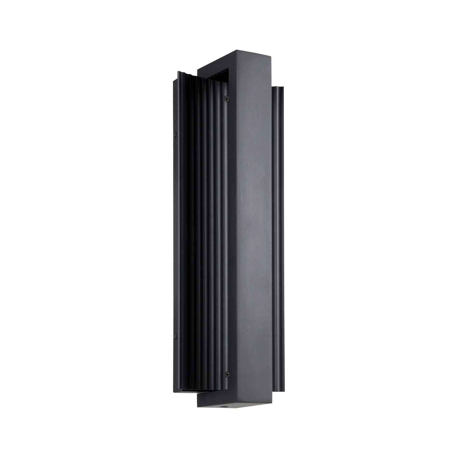 • Zenith features a sculptural outdoor wall light design defined by a curved ribbed metal reflector and a sleek, modern angular bar