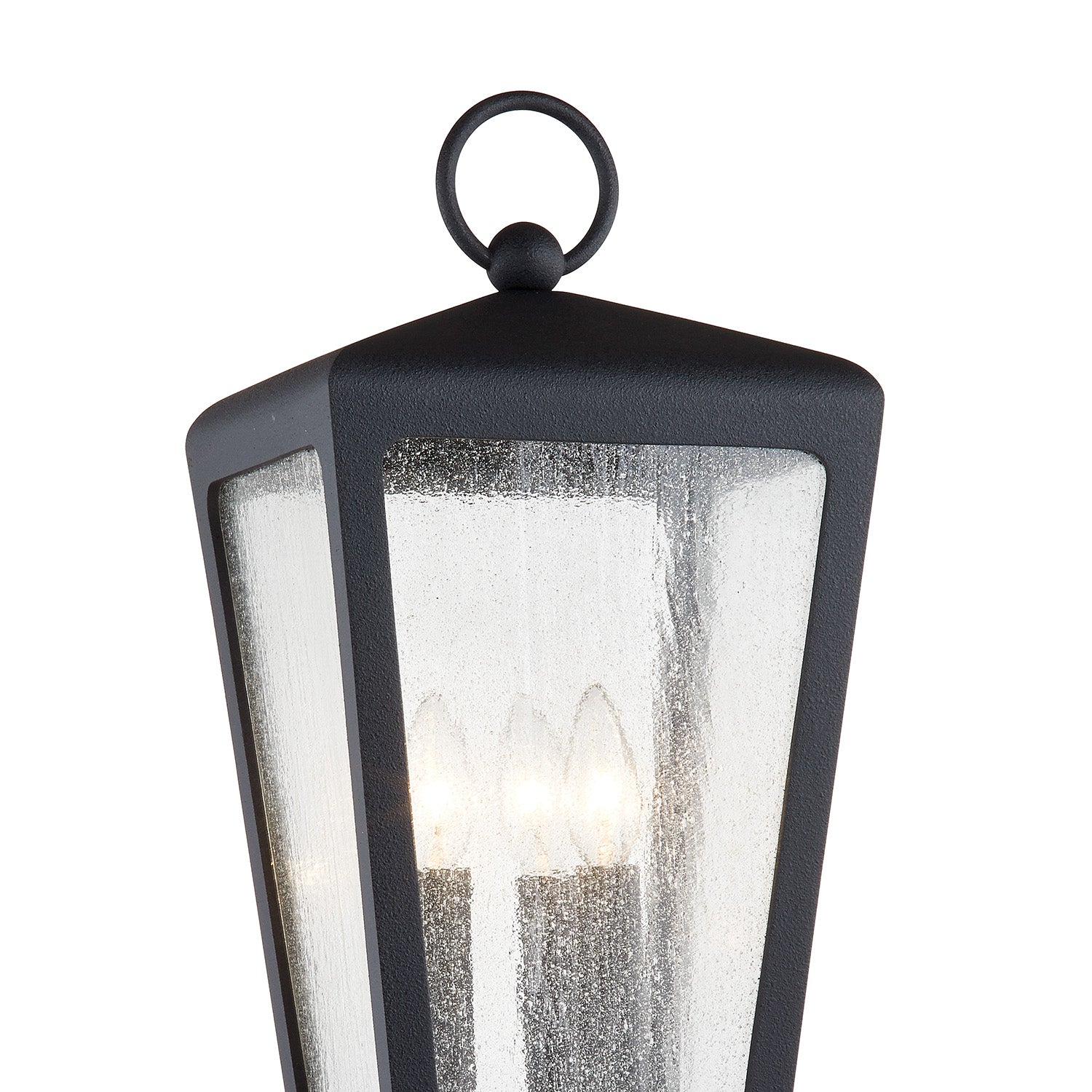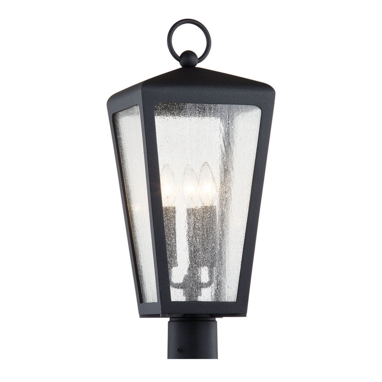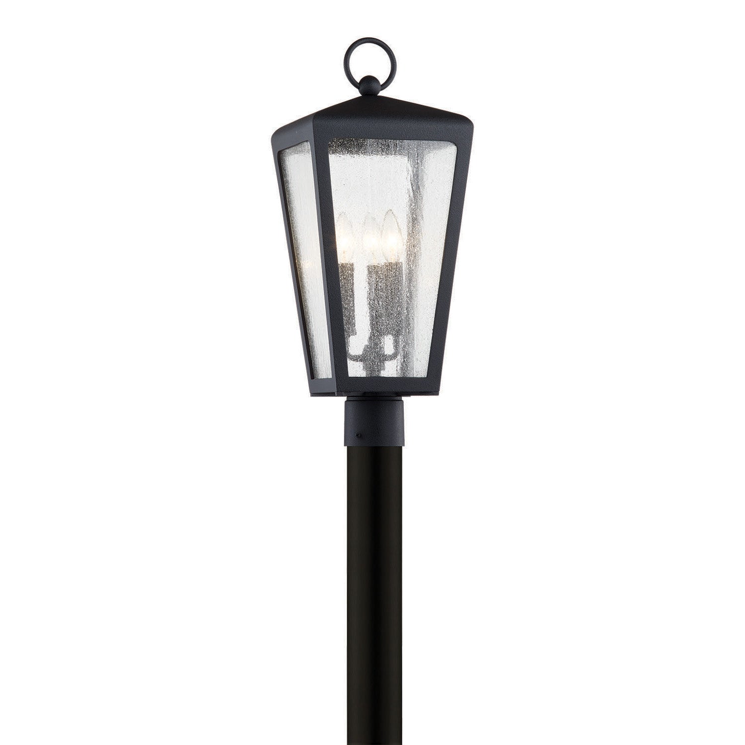 The Barrett Outdoor Post Light is a traditional outdoor lantern that makes a refined statement with its distinctive tapered frame and elegant, seeded glass panels. The sturdy aluminum frame holds clear seeded glass, creating a classic silhouette that adds character and welcoming light to your outdoor spaces. Designed to withstand the elements, this fixture provides bright, multi-directional illumination, enhancing the safety and curb appeal of your home. With its UL wet rating, this outdoor post light is a perfect solution for illuminating a driveway or walkway. The sophisticated textured black finish, delivers enduring, traditional style and a perfect blend of form and function.