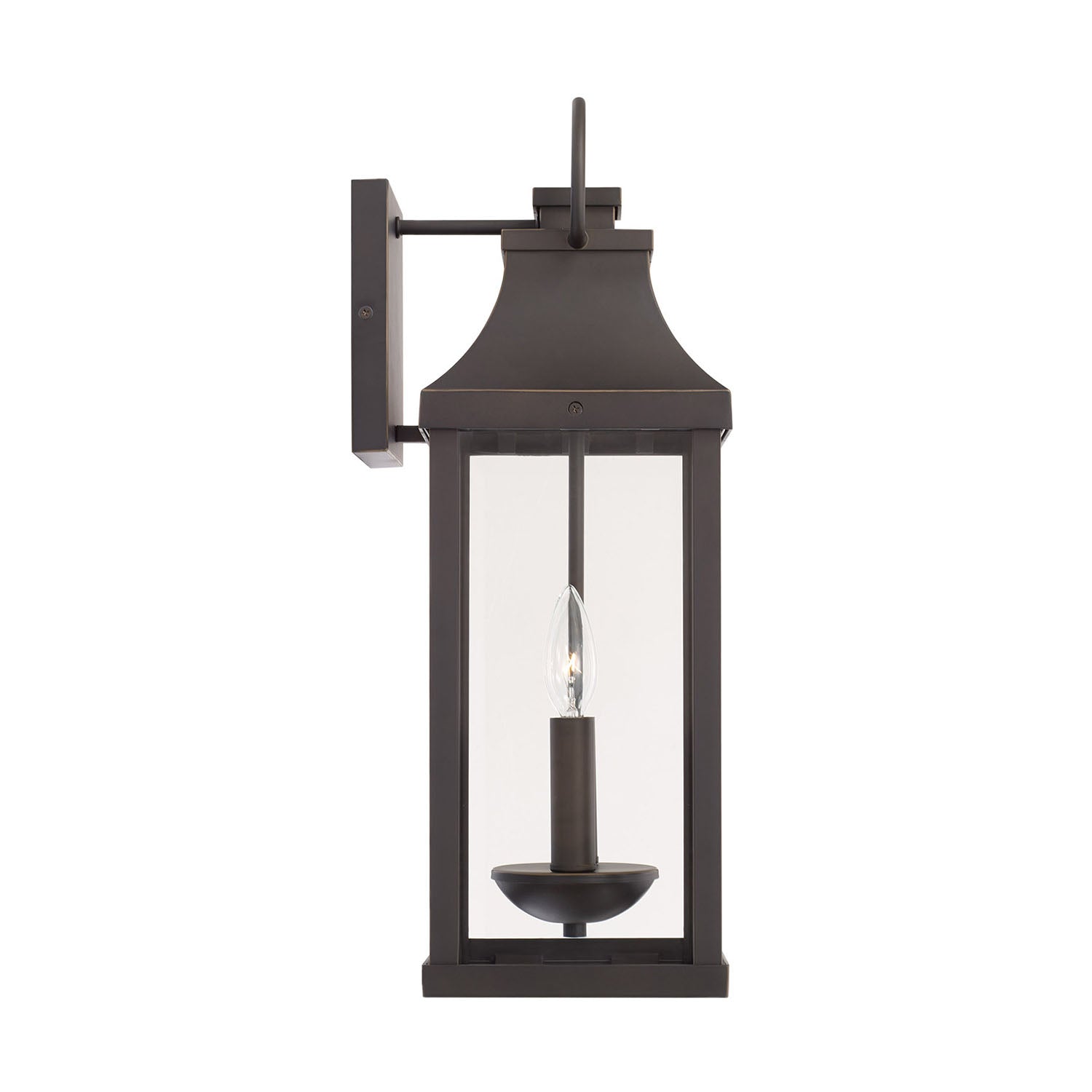 The classic beauty of the Ainsley Medium Outdoor Wall Light brings timeless charm to your home's exterior with its traditional lantern silhouette and distinctive curved top. This elegant fixture captures the essence of heritage lighting with its clean rectangular frame and graceful arched canopy, creating an inviting beacon for any outdoor space. The rich oiled bronze finish beautifully complements the clear glass panels, while the signature ring handle adds an authentic touch of old-world craftsmanship. Perfect for flanking entryways, illuminating pathways, or enhancing covered porches, this versatile wall light combines enduring style with reliable performance.