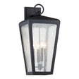 The Barrett Outdoor Wall Light is a traditional outdoor lantern that makes a commanding statement with its distinctive tapered frame and elegant, seeded glass panels. The sturdy aluminum frame holds clear seeded glass, creating a classic silhouette that adds character and welcoming light to your outdoor spaces. Designed to withstand the elements, this fixture provides bright, multi-directional illumination, enhancing the safety and curb appeal of your home. With its UL wet rating, this outdoor wall light is a perfect solution for a grand entryway or large exterior wall. The sophisticated textured black finish, delivers enduring, traditional style and a perfect blend of form and function.