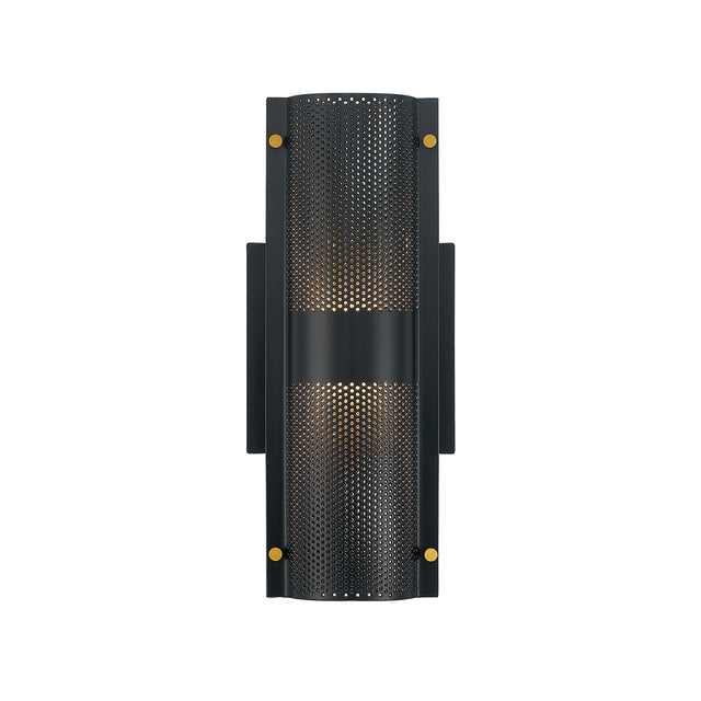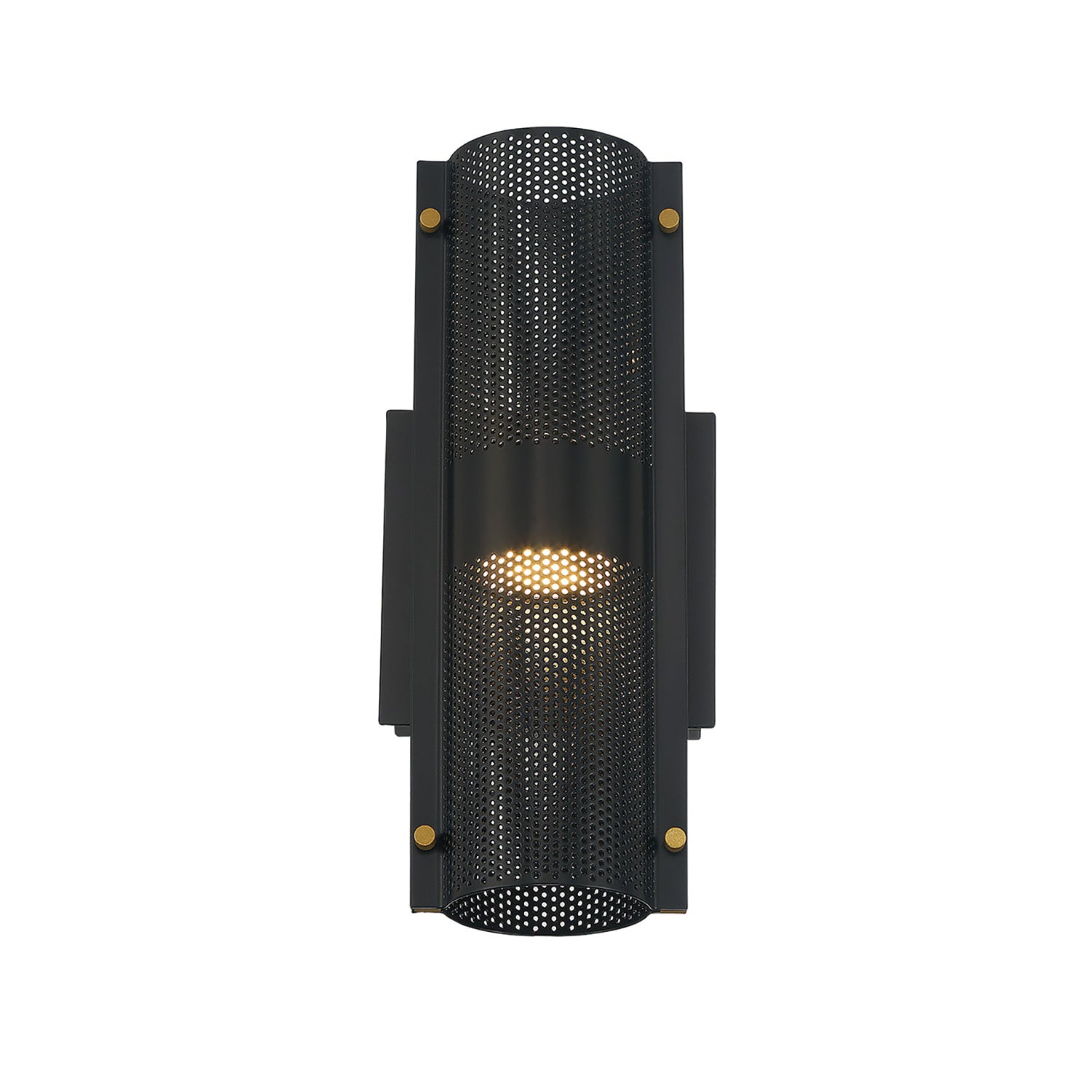 The Quin LED Outdoor Wall Light features a perforated metal shade that filters light through carefully designed openings, creating illumination that transforms entryways, patios, and outdoor living areas by casting a soft glow on surrounding walls. The textured pattern reduces glare while displaying a warm gradient of light, and the contrast between the deep black finish and luminous gold accents delivers contemporary elegance with an industrial sophistication. At 17" in height with integrated LED technology and compact mounting, this outdoor sconce makes a refined statement that brings modern drama to any exterior.