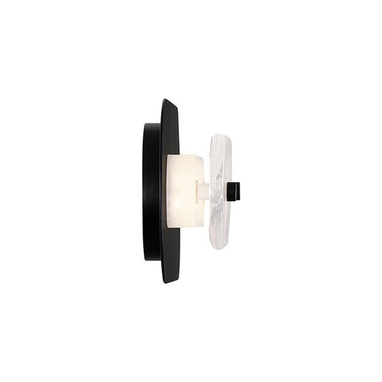 • Oval form with a powder-coated black frame featuring textured glass that creates mesmerizing light patterns and halo effects