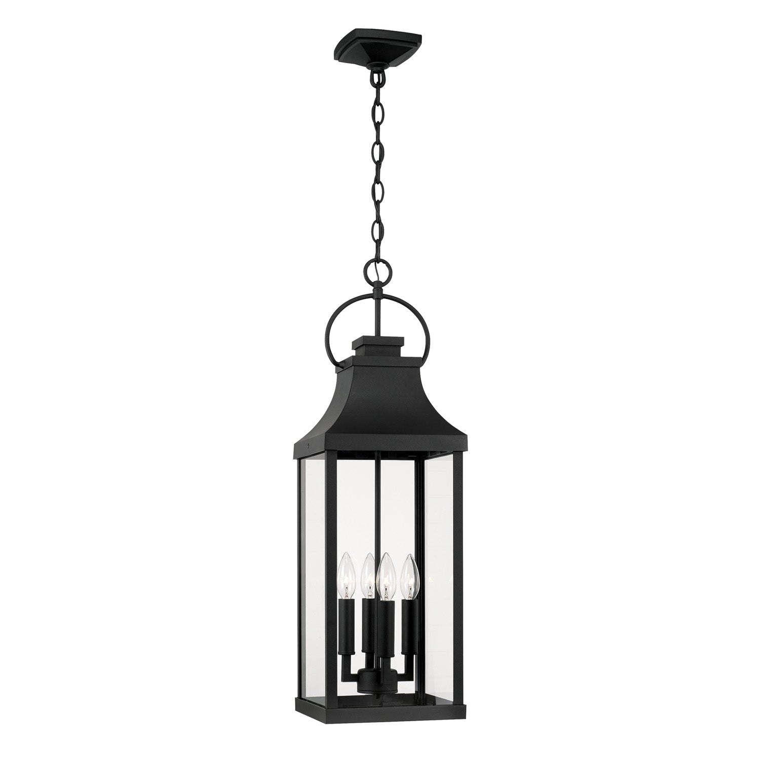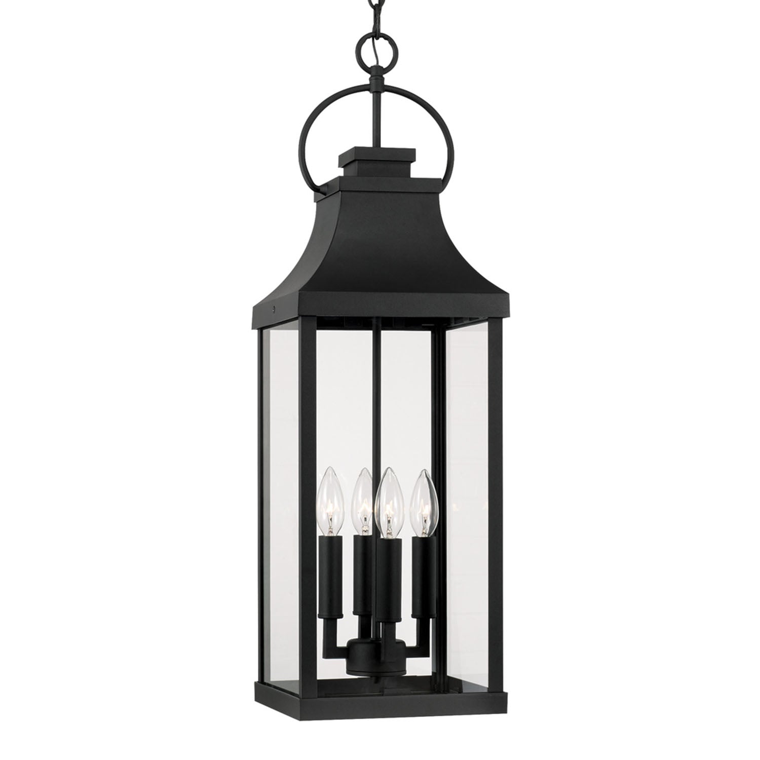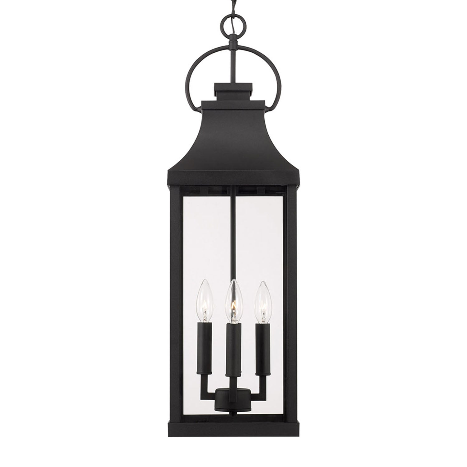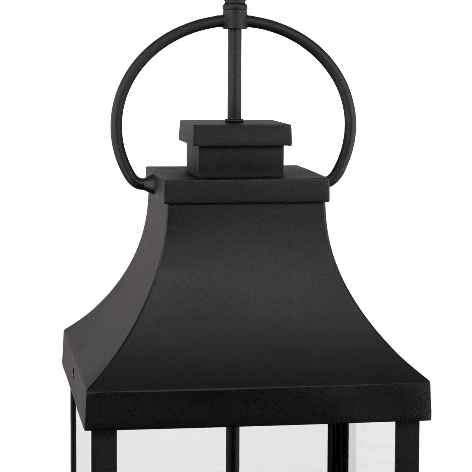 The classic beauty of the Ainsley Outdoor Hanging Light brings timeless charm to your exterior spaces with its traditional lantern silhouette and distinctive curved top. This elegant fixture captures the essence of heritage lighting with its clean rectangular frame and graceful arched canopy, creating an inviting focal point for covered porches, patios, and entryways. The rich matte black finish beautifully complements the clear glass panels, while the signature ring handle adds an authentic touch of old-world craftsmanship. Perfect for creating a welcoming atmosphere in any outdoor space, this versatile hanging light combines enduring style with reliable performance.