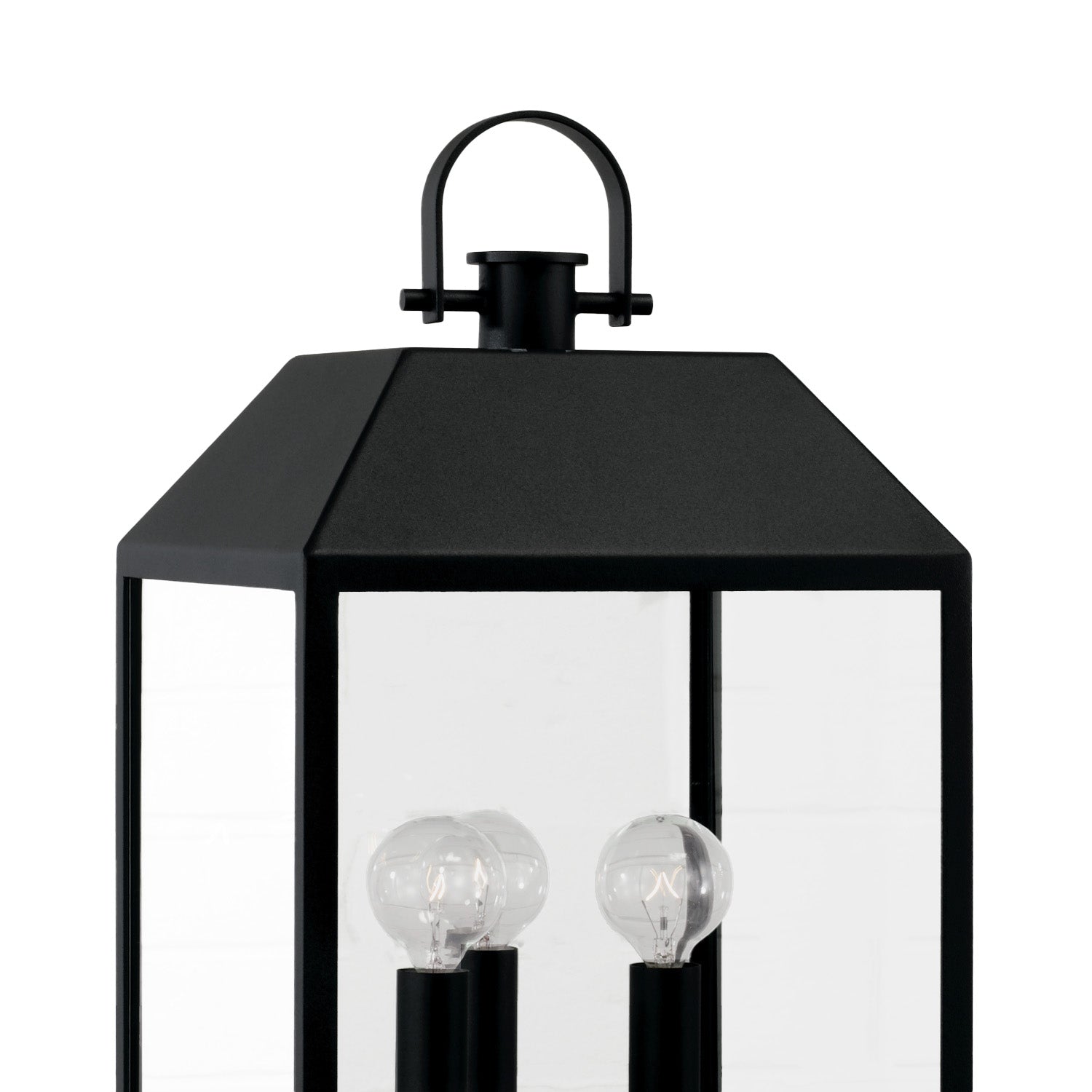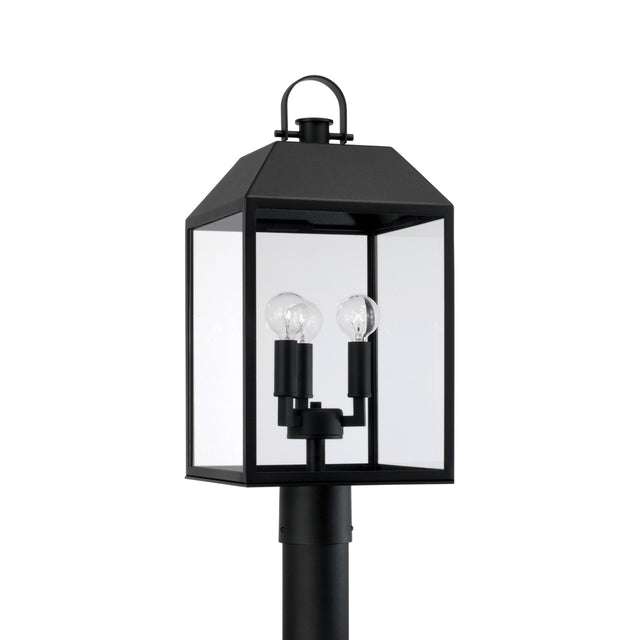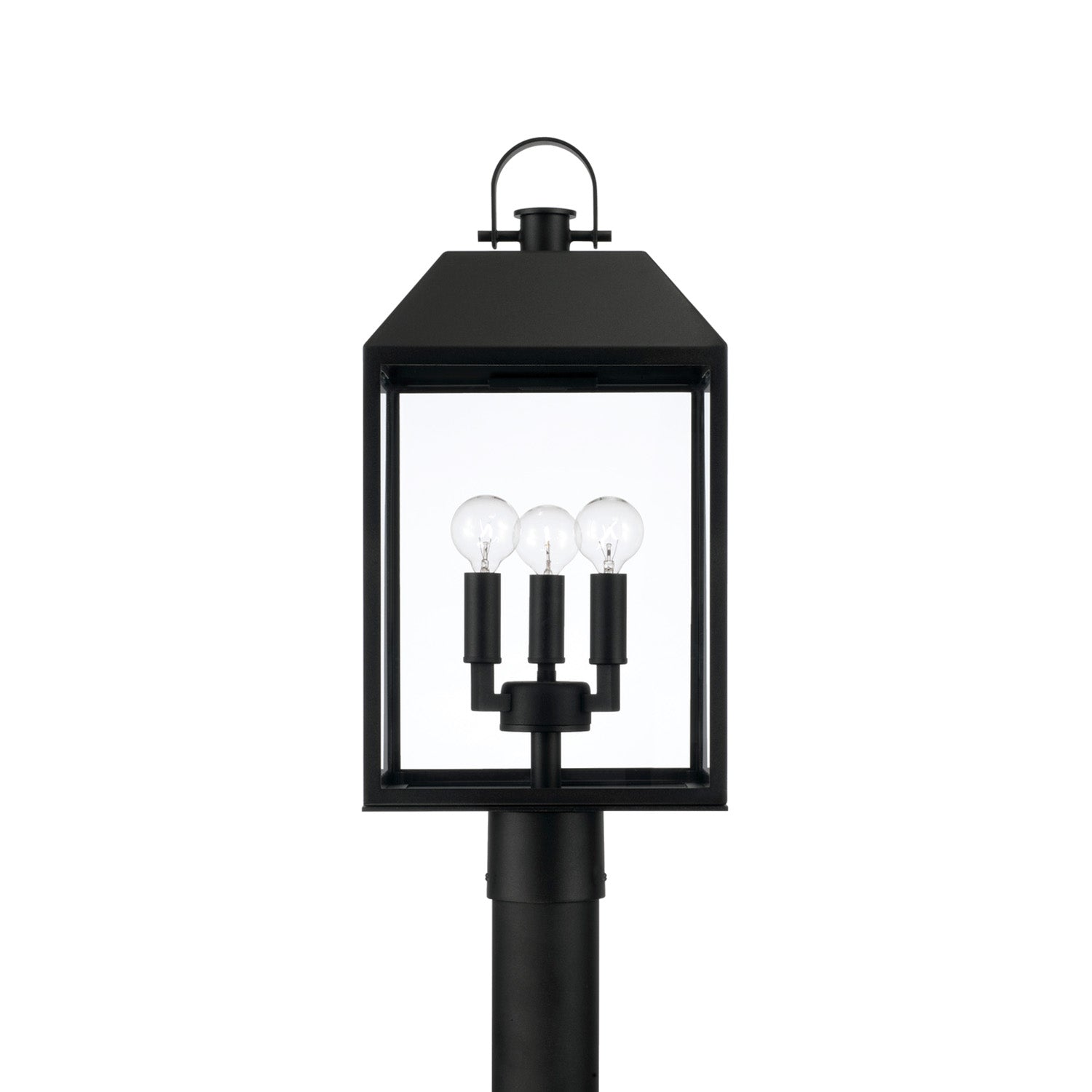 Clean lines meet industrial inspiration in the Porter Outdoor Post Light, delivering modern sophistication to your exterior spaces. This refined fixture features a boxy glass lantern with a flat-topped roof and distinctive decorative handle, designed for post mounting to create an inviting beacon for pathways, driveways, and garden areas. The rich matte black finish and clear glass panels work together to provide bright, unobstructed illumination while maintaining a streamlined aesthetic. With its geometric simplicity and quality construction, this fixture brings professional polish to outdoor landscapes that demand both style and performance.