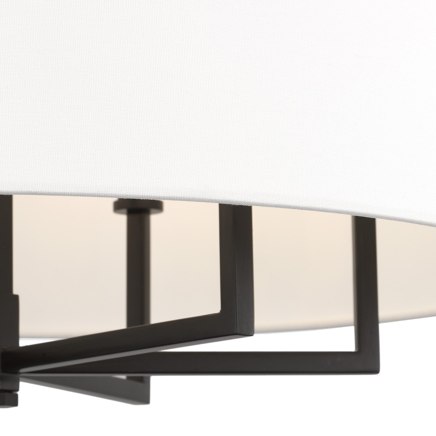 • Large white linen shade complements thoughtfully balanced proportions with soft, diffused glow