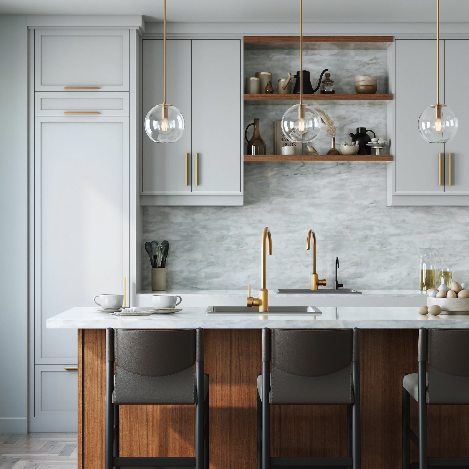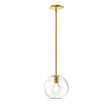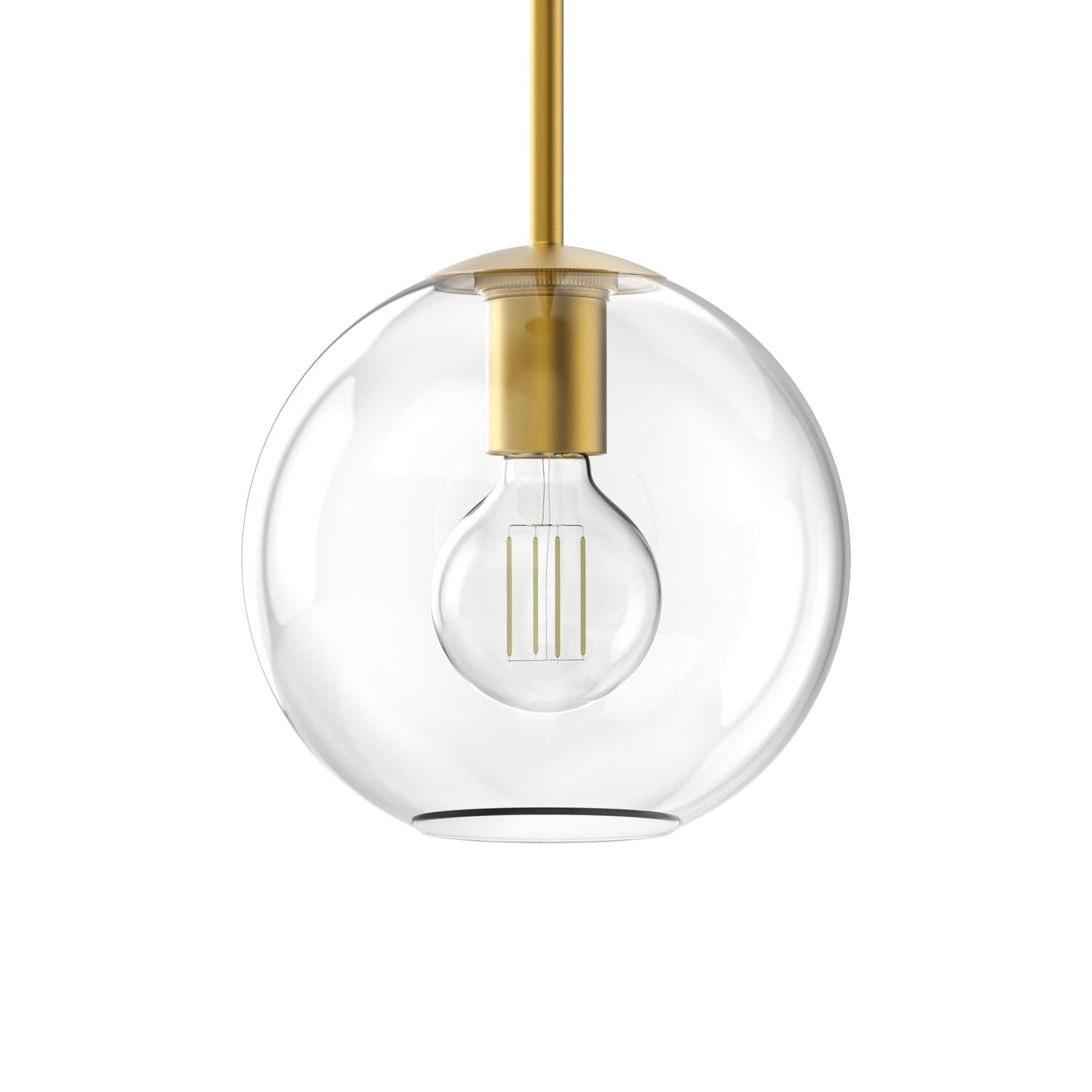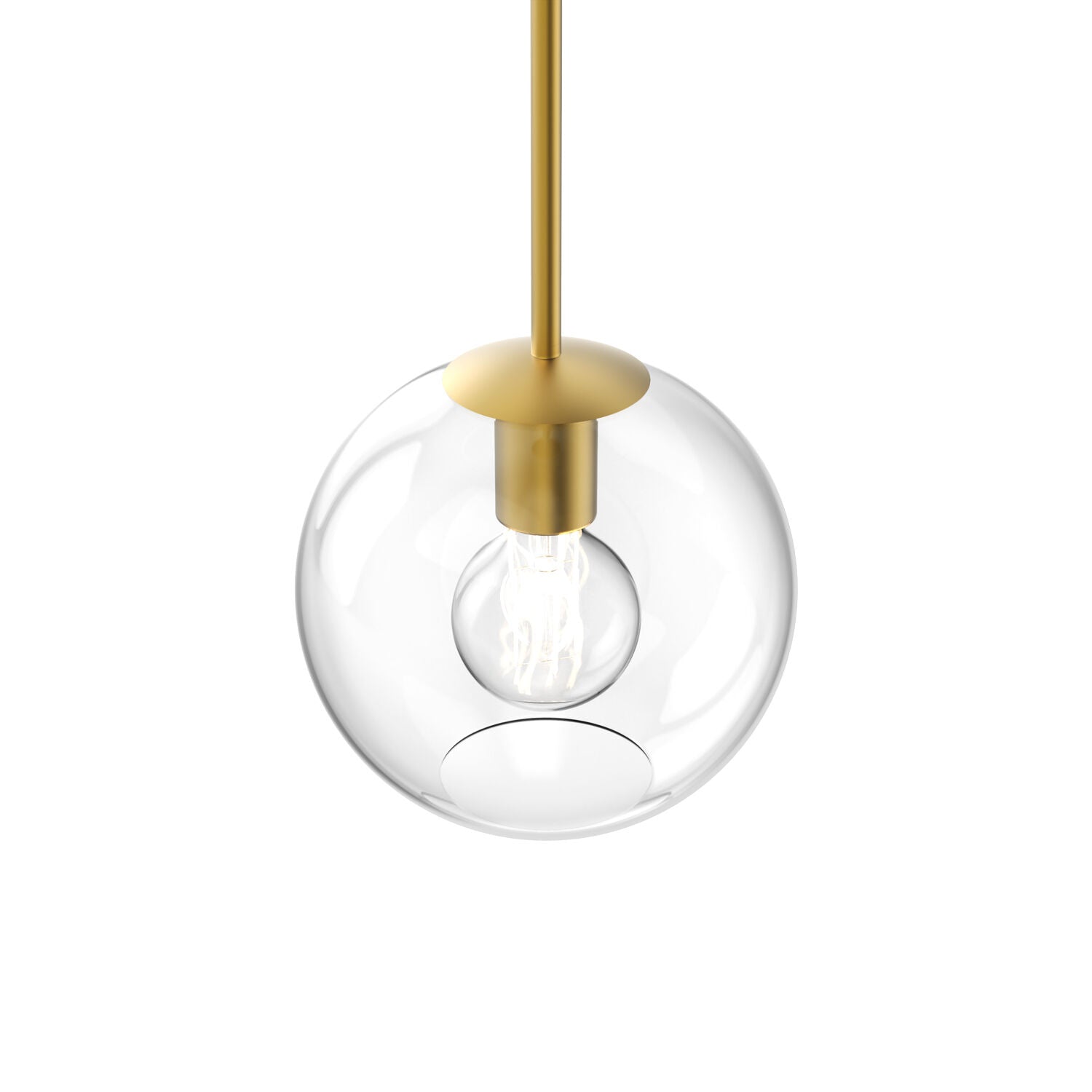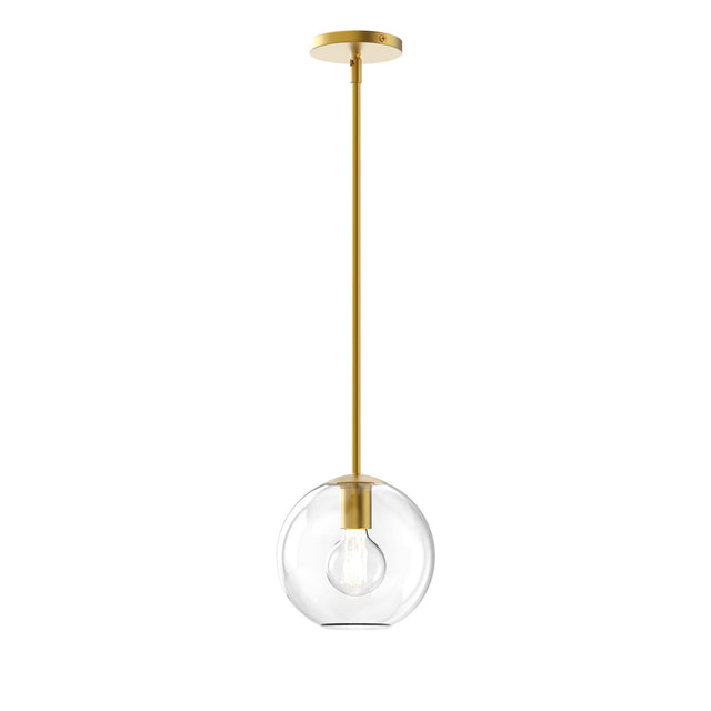 The Aria 8" Clear Globe Pendant Light is a beautiful, modern interpretation of the classic pendant ceiling light. Features a crystal clear glass shade encasing the seamless metal socket, and suspended by adjustable down rods hung from a circular canopy- all in a warm, satin brass finish. This updated fixture pairs superior materials with exceptional style, for a look that is both timeless and chic. Ideal in hallways with standard or tall ceilings, above a small table, or paired up over a kitchen island.