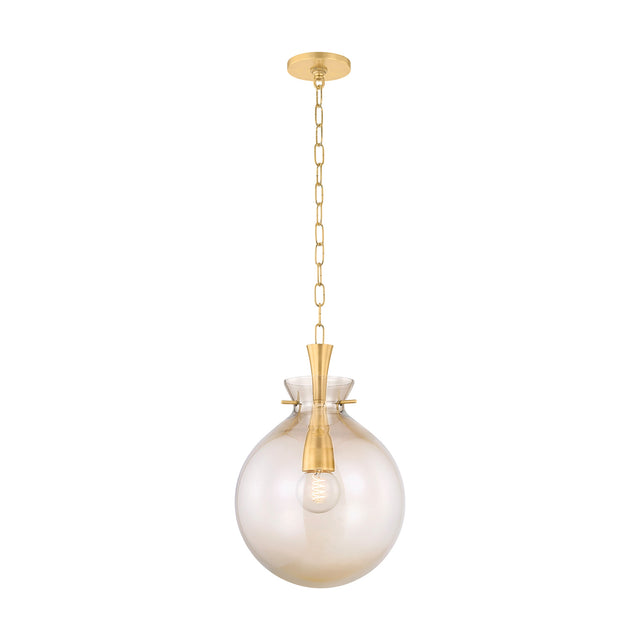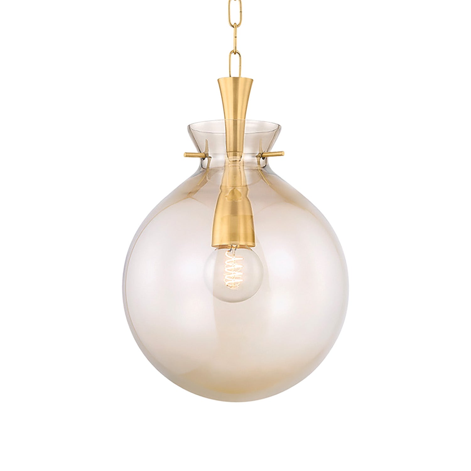 The Arianne Pendant exudes understated luxury with its glass globe silhouette and rich smoke taupe finish. A subtle mirrored effect on the glass adds depth and a touch of glamour, while the aged brass hardware enhances the pendant’s refined aesthetic. Suspended from an adjustable chain, the fixture creates a striking centerpiece that casts soft, inviting illumination. Perfect for dining areas, entryways, or layered above kitchen islands, the Arianne balances sculptural elegance with functional, warm lighting for modern and transitional interiors.