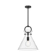 Aris Medium Pendant 14", Matte Black and Clear Glass