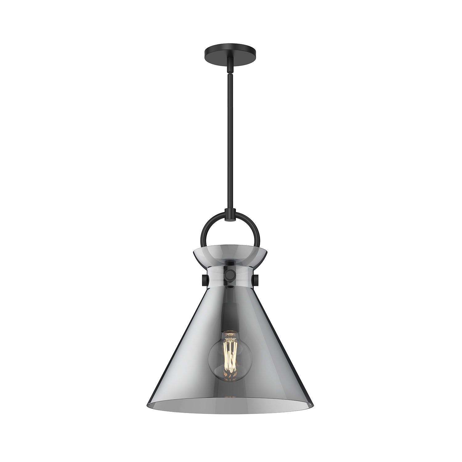 • Versatile modern pendant design with smoke glass shade and matte black hardware