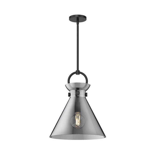 Aris Medium Pendant 14", Matte Black and Smoke Glass