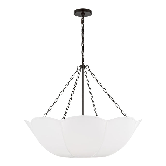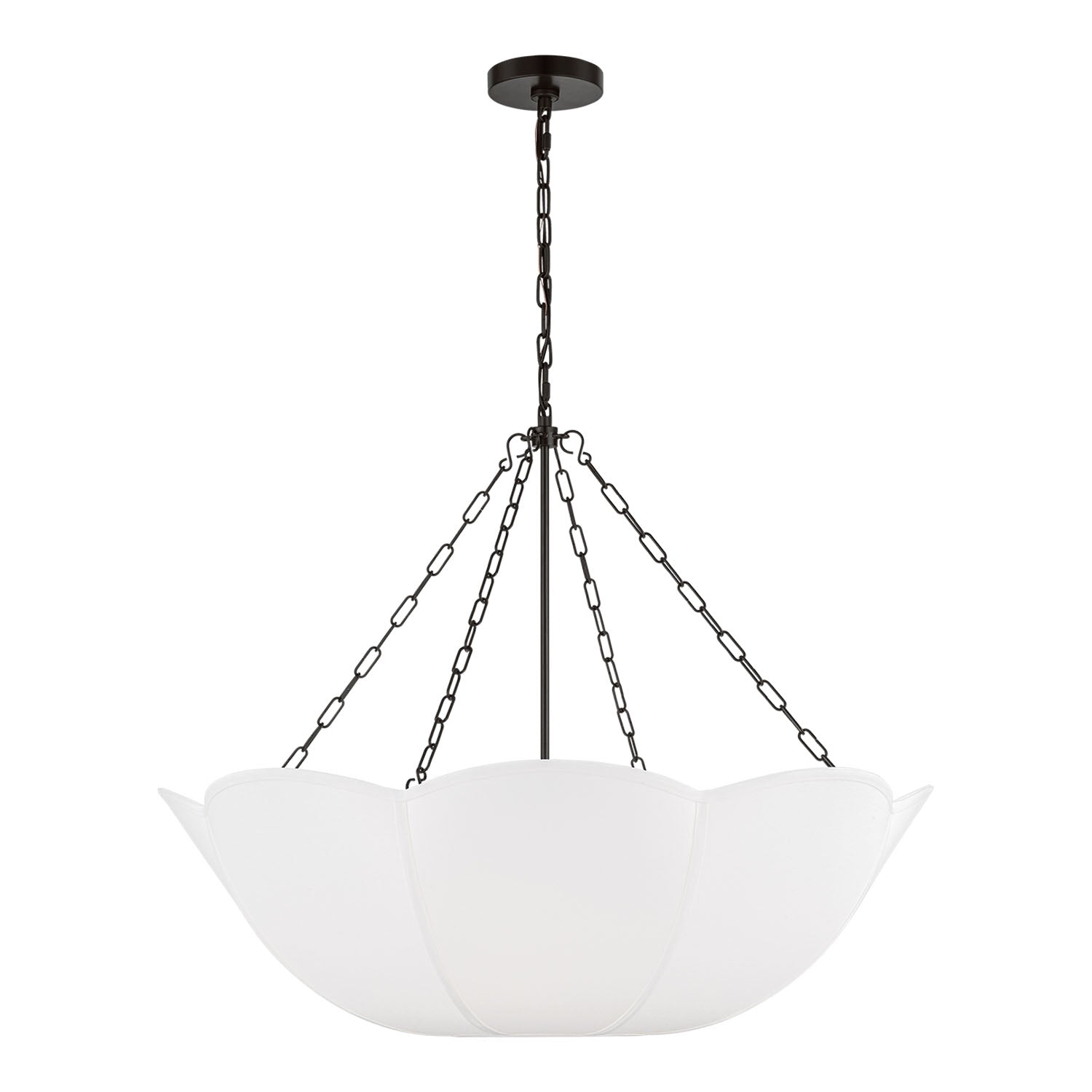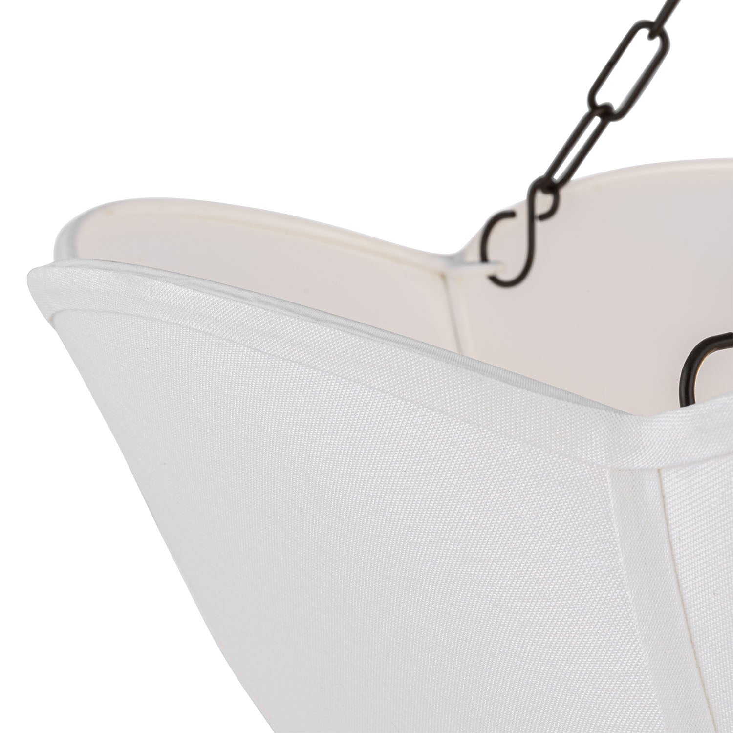 The Ava Pendant is reminiscent of a spring tulip, featuring a graceful silhouette that creates elegant illumination with organic charm and sophisticated presence. This refined 32" pendant showcases the beautiful contrast of metal chain detailing and white linen, creating a harmonious statement that enhances grand dining rooms, spacious living areas, large entryways, great rooms, and areas seeking statement pendant lighting with distinctive appeal. The aged iron framework creates sophisticated depth against the curved form while the white linen shade provides soft, diffused illumination with natural elegance. With its damp-rated construction and flexible hanging height, this thoughtfully crafted pendant elevates any space with distinctive style and reliable performance.