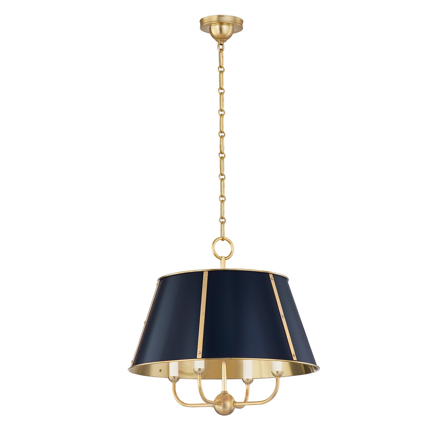Avery 4 Light Large Pendant 20", Midnight Blue and Aged Brass