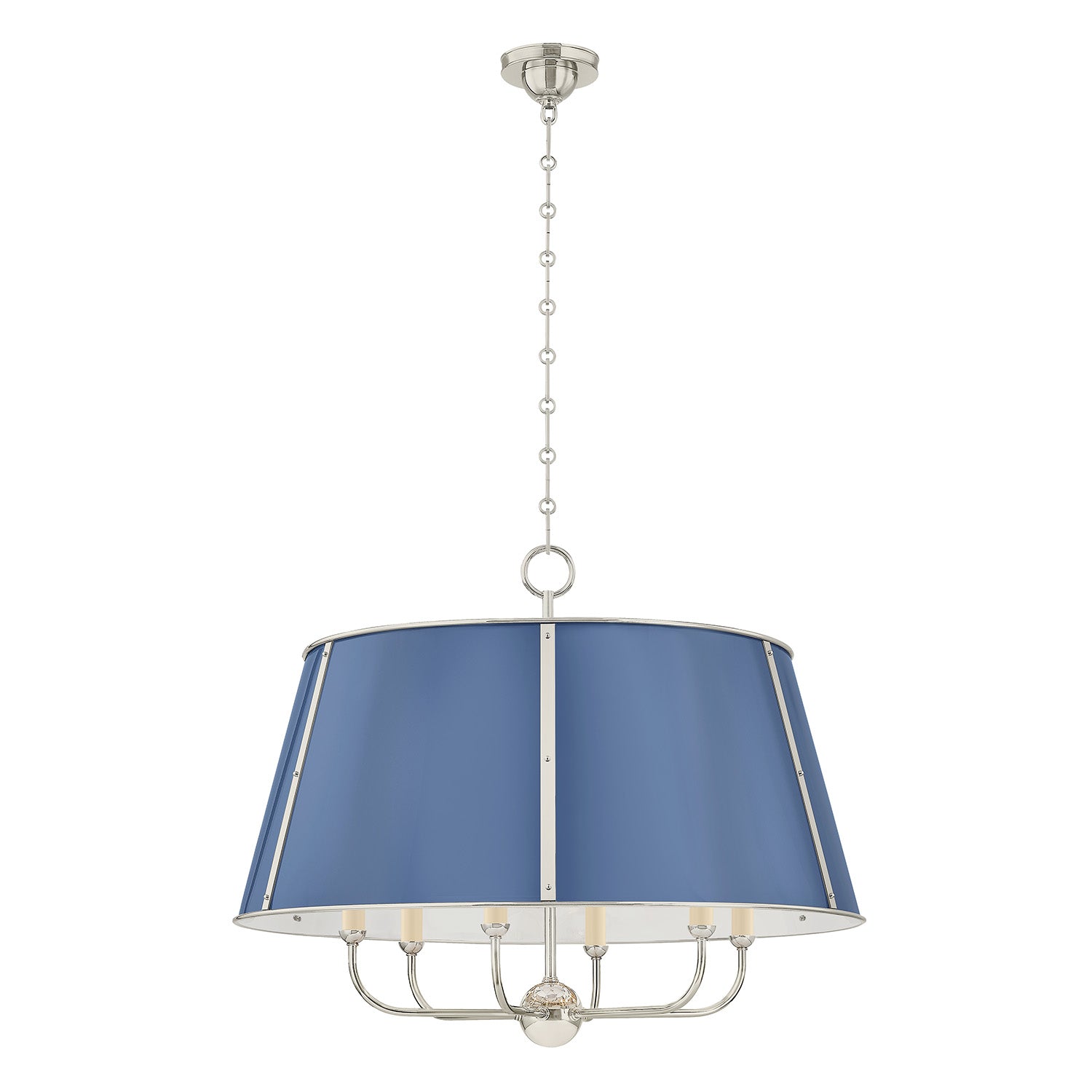 Avery 6 Light Extra Large Pendant 28", Dutch Blue and Polished Nickel