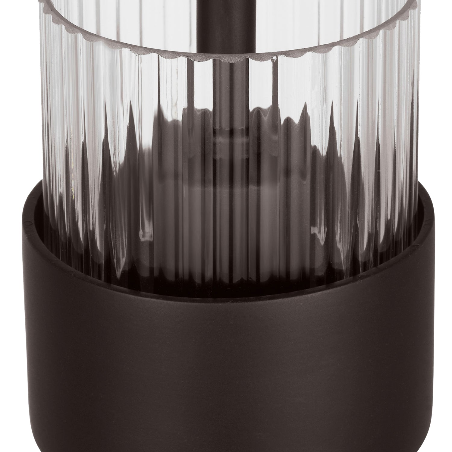 • Clear fluted glass shade with a central metal band provides a unique, diffused glow