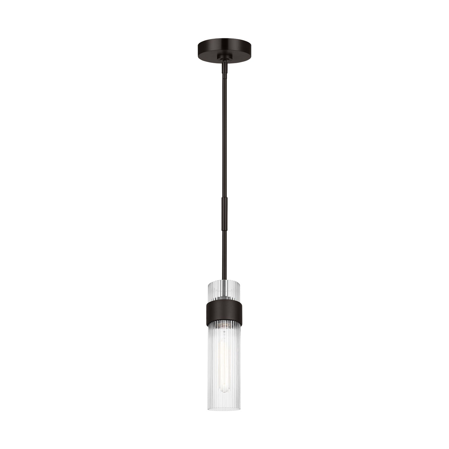 • Modern pendant with a refined, vertical profile and a clear fluted glass shade