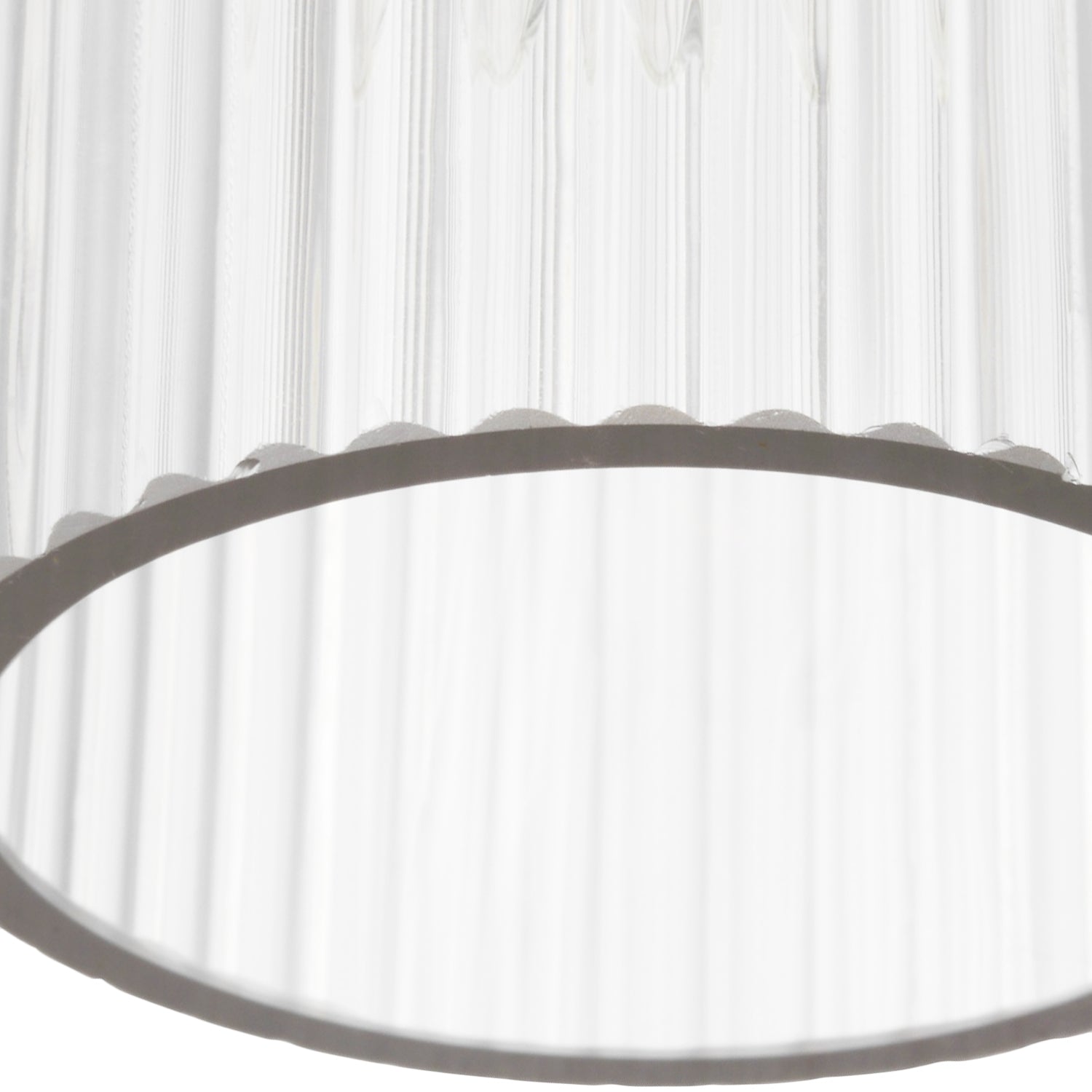 • Clear fluted glass shade with a central metal band provides a unique, diffused glow
