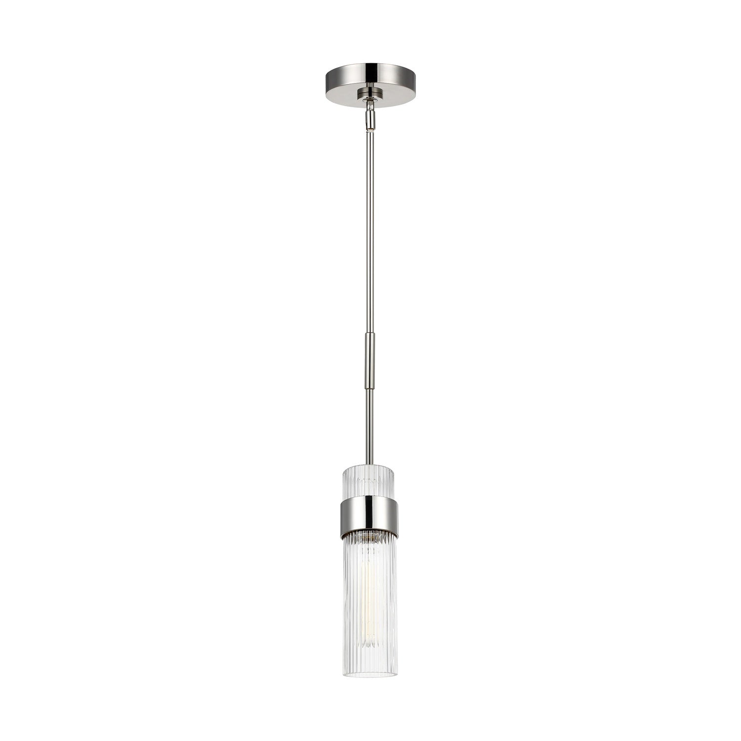 The Barclay Small Pendant makes a sophisticated statement with its elegant, vertical design. A single clear fluted glass shade forms a refined look that is beautifully accented by a bold metal band. The fixture is thoughtfully designed to cast a unique, diffused glow, providing ample illumination for a kitchen island, entryway, or hallway. With its ETL damp rating and sloped ceiling compatibility, it adds both functional beauty and versatile appeal to any interior. The brilliant Polished Nickel finish offers a sleek, reflective sheen that beautifully complements the fixture's elegant silhouette. This striking pendant is a perfect blend of style and functionality, adding a touch of refined elegance to your interior.