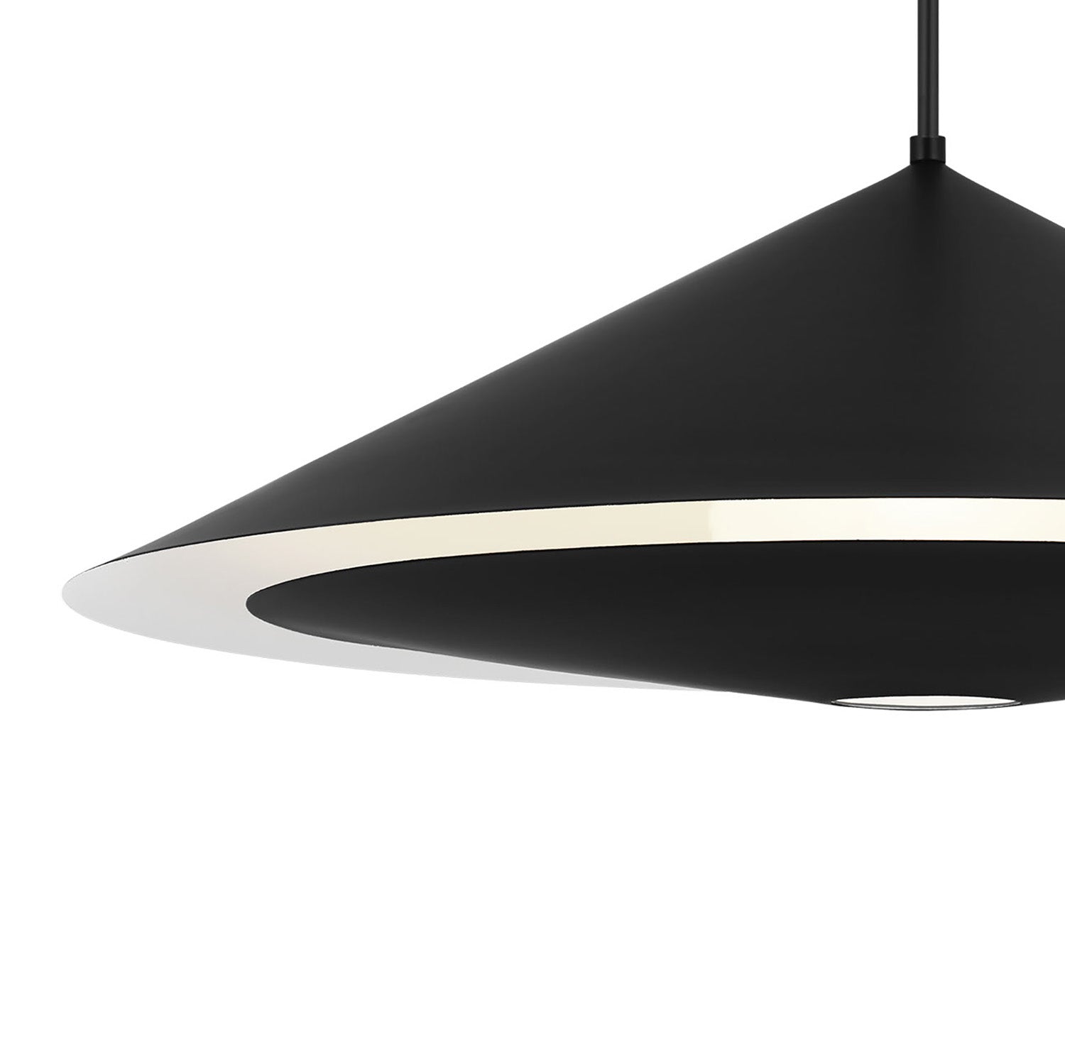 The Belvin Extra Large Pendant features expertly crafted spun metal construction that creates a refined conical silhouette with a clean, minimalist aesthetic throughout the space. This sophisticated 36" pendant delivers innovative dual illumination with direct downlighting and gentle indirect light that washes from within the shade's interior, perfect for grand dining rooms, large kitchen islands, expansive living spaces, and areas seeking dramatic statement pendant lighting with commanding architectural presence. The matte black finish creates bold contrast against the sleek conical form while accommodating standard bulbs for flexible lighting options. Drawing inspiration from classic small-aperture fixtures while embracing contemporary design principles, this extra large-scale pendant elevates any space with streamlined elegance and extraordinary visual impact.