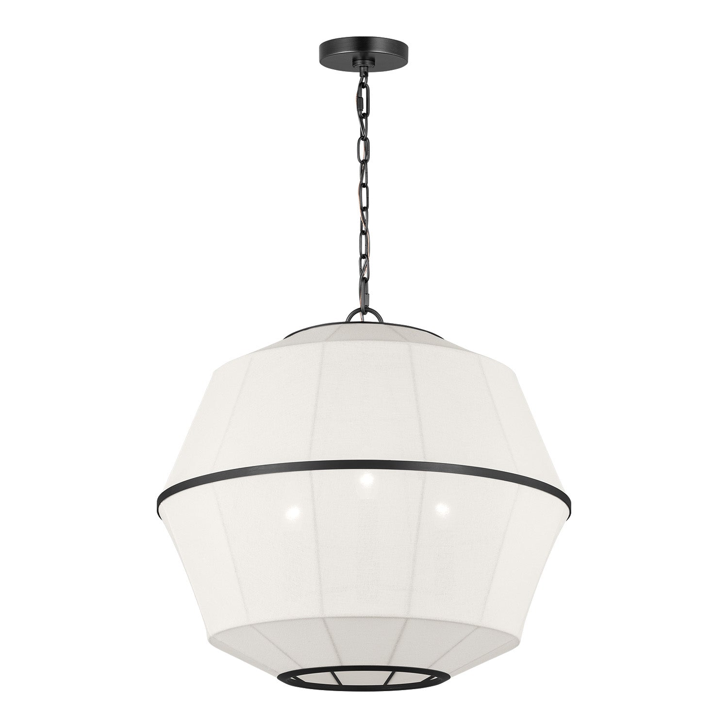 The Birch Medium Pendant features an elegant silhouette with distinctive metal banding. Combining structured metal framework with luxurious white linen, it creates sophisticated illumination through the compelling contrast of hard and soft materials. This refined 22" pendant features a generous linen shade that radiates soft, diffused light while the aged iron accent band creates sophisticated depth against the natural textile elements, perfect for dining rooms, living rooms, bedrooms, entryways, and spaces seeking statement pendant lighting with distinctive character. The interplay between the sleek metal structure and soft linen shade creates visual and textural interest that enhances both contemporary and traditional interiors. With its damp-rated construction and substantial hanging range, this thoughtfully designed pendant elevates any space with distinctive style and performance.