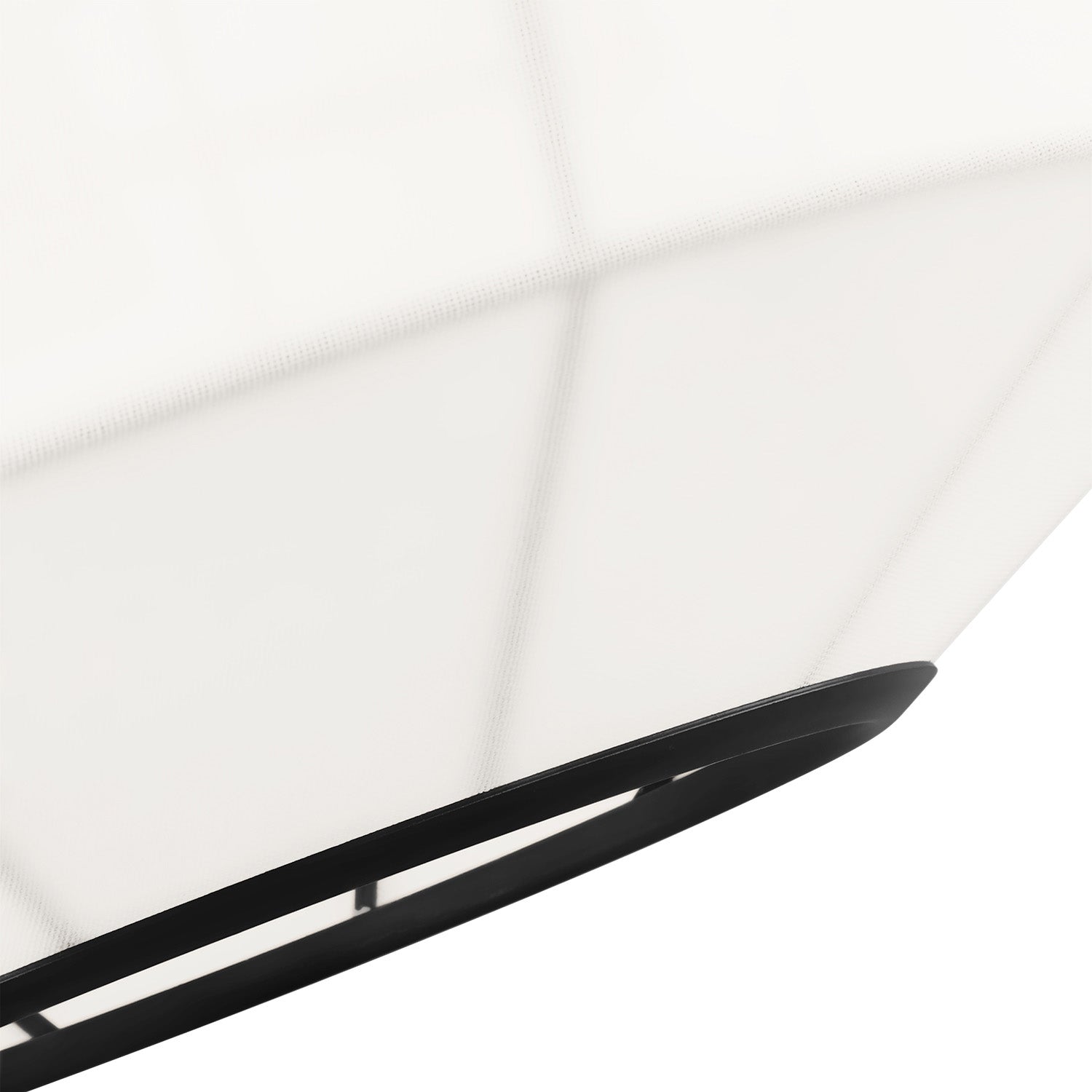 • White linen shade provides soft, diffused illumination with organic warmth and tactile elegance