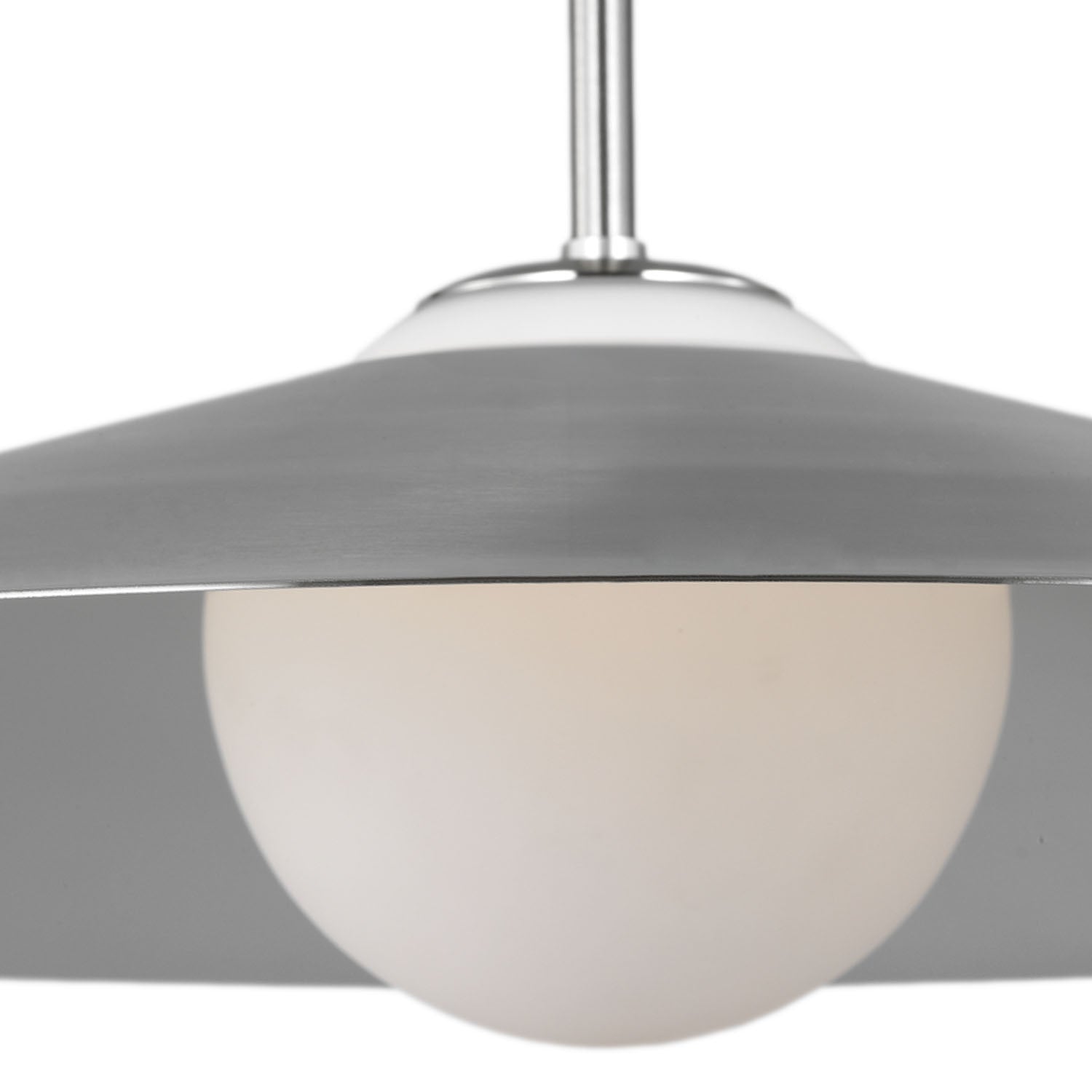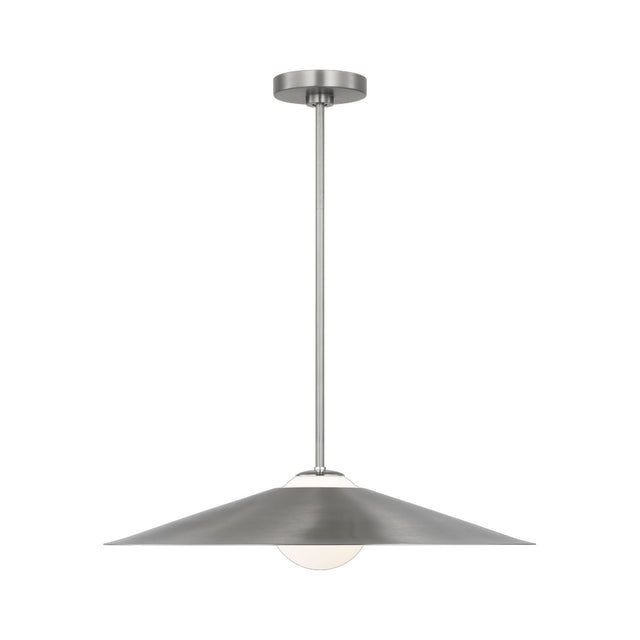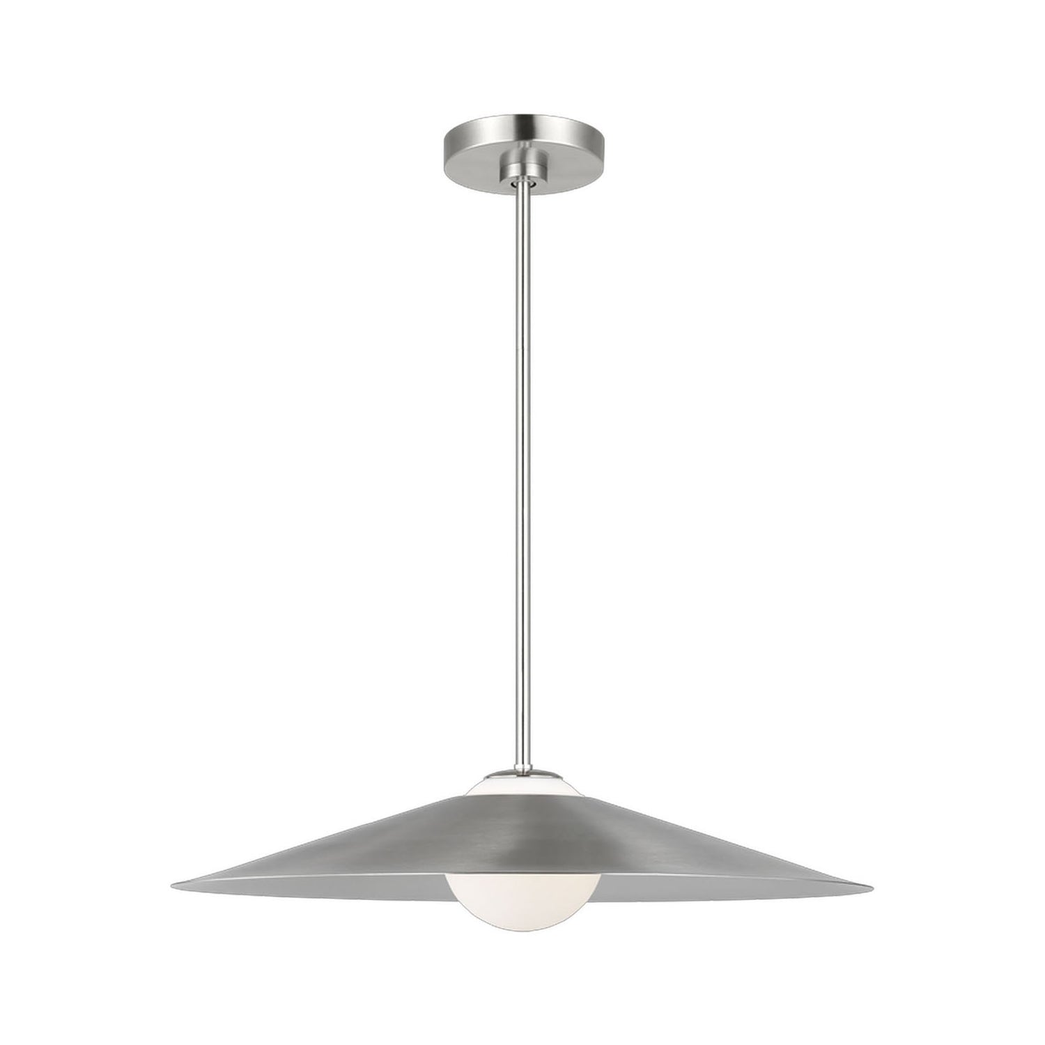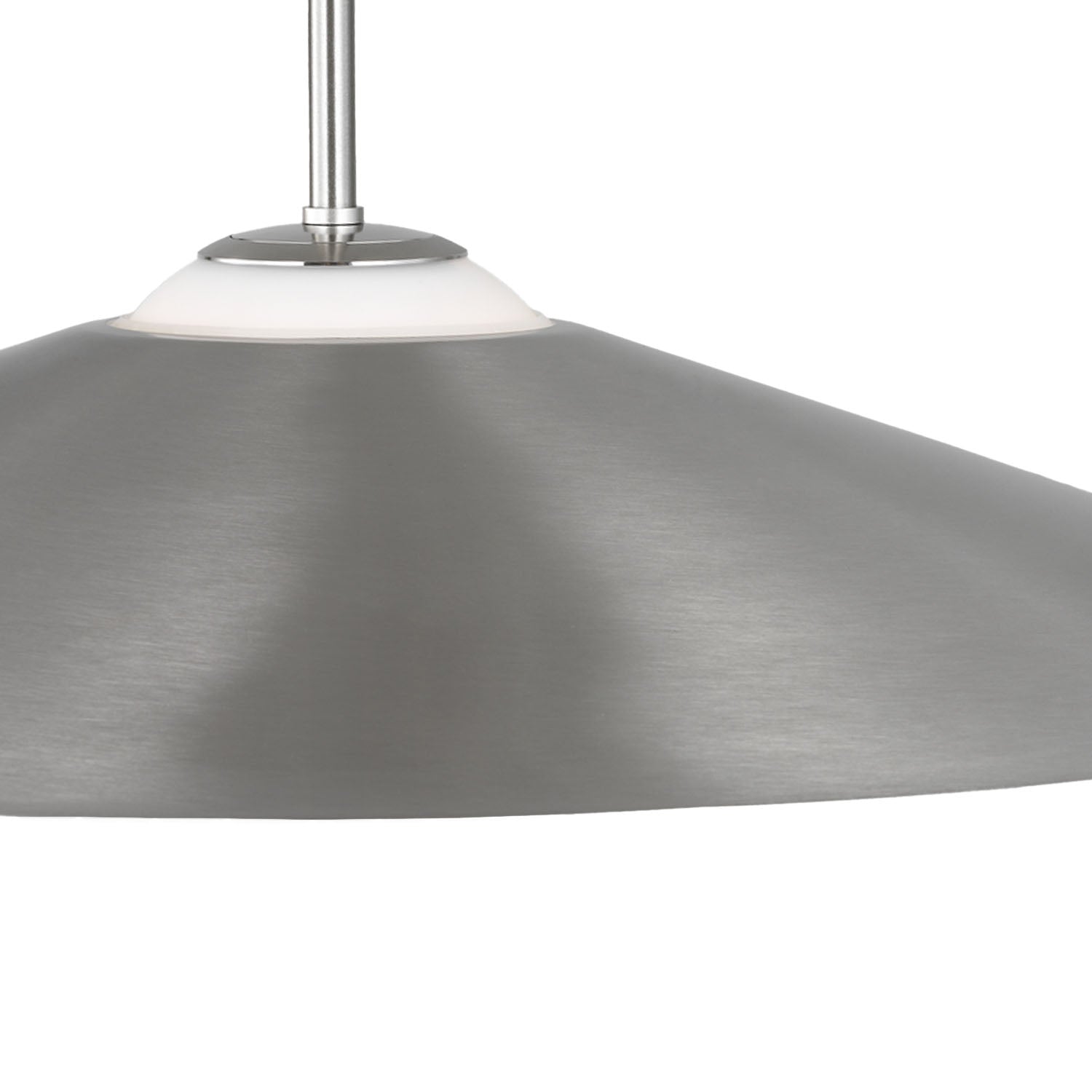 The Braxton Pendant draws inspiration from classic industrial design, transforming vintage influence into sophisticated modern lighting with a bold 24" diameter and distinctive dual-illumination design. This refined fixture features a sleek metal shade that gracefully frames an opal glass globe, creating captivating light play as illumination radiates both above and below the shade for enhanced ambient lighting throughout the space. Perfect for kitchen islands, dining rooms, and areas seeking statement pendant lighting with refined appeal, the brushed nickel finish delivers clean contemporary elegance that complements modern, transitional, and minimalist interiors with timeless sophistication. The substantial scale and unique lighting distribution make this pendant ideal for spaces requiring both task and ambient illumination. With its damp-rated construction and versatile design, this pendant transforms any space with distinctive style and performance.