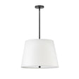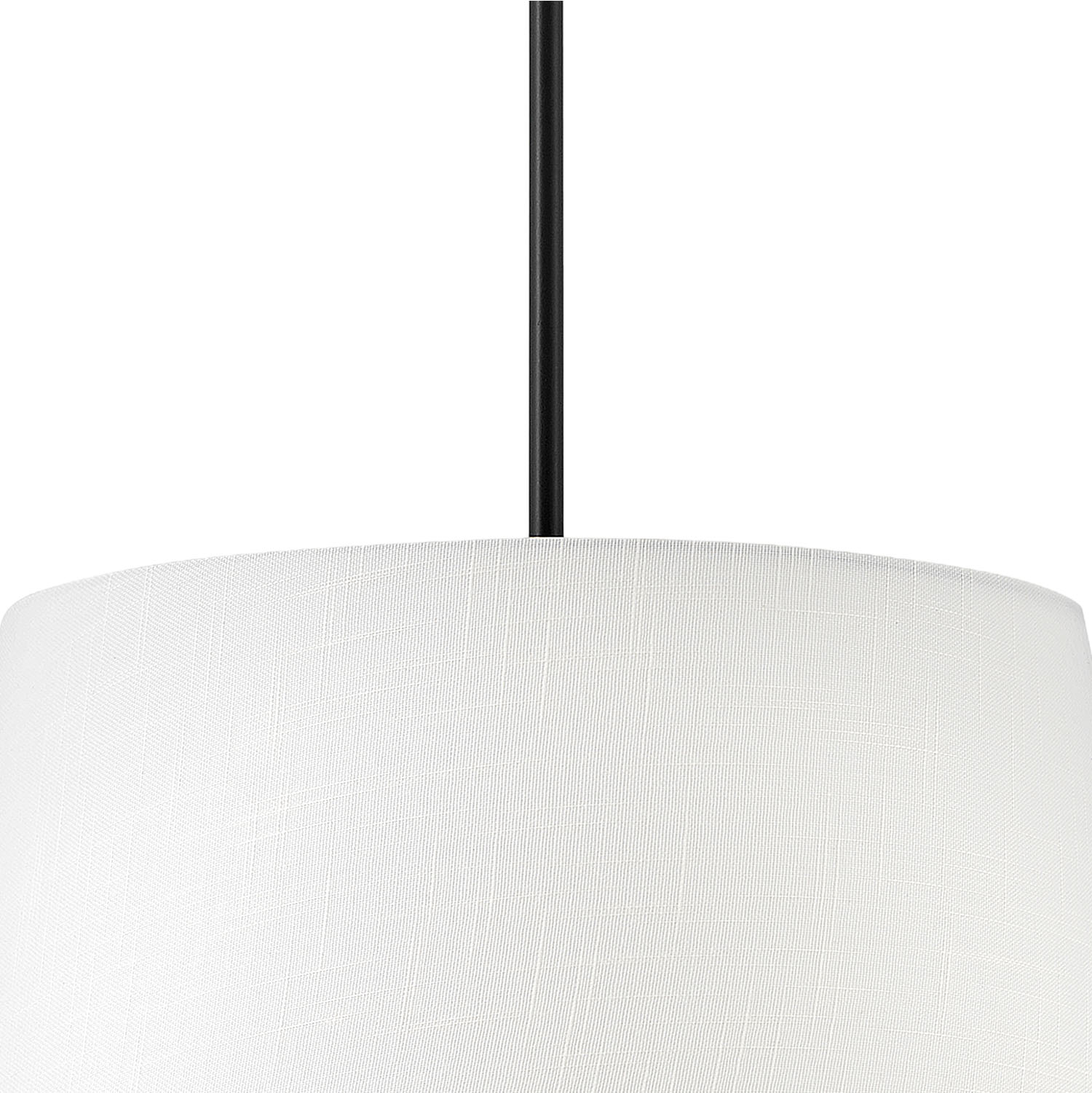 The Declan Large Pendant makes a refined statement, defined by its crisp lines and timeless, tailored design. The fixture features a large white linen drum shade and a subtle metal frame, creating a balanced and elegant silhouette that adds warmth to any space. This pendant is thoughtfully designed to provide soft, diffused illumination, making it an ideal centerpiece for a dining nook, bedroom, or entryway. With its ETL dry rating and sloped ceiling compatibility, it offers both functional beauty and versatile appeal. The bold Black finish enhances the fixture's tailored silhouette, resulting in a look of enduring style and timeless elegance.
