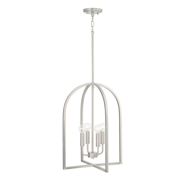 The Elira Lantern Pendant brings timeless elegance to any space with its classic design and sophisticated brushed nickel finish. Featuring an open cage frame with four candelabra bulbs, this fixture delivers brilliant illumination perfect for dining rooms, foyers, or large living areas. The brushed nickel finish adds subtle sophistication that complements both traditional and contemporary interiors. The Elira Collection combines classic proportions with versatile styling to create a distinctive lighting solution that enhances your space with enduring sophistication.