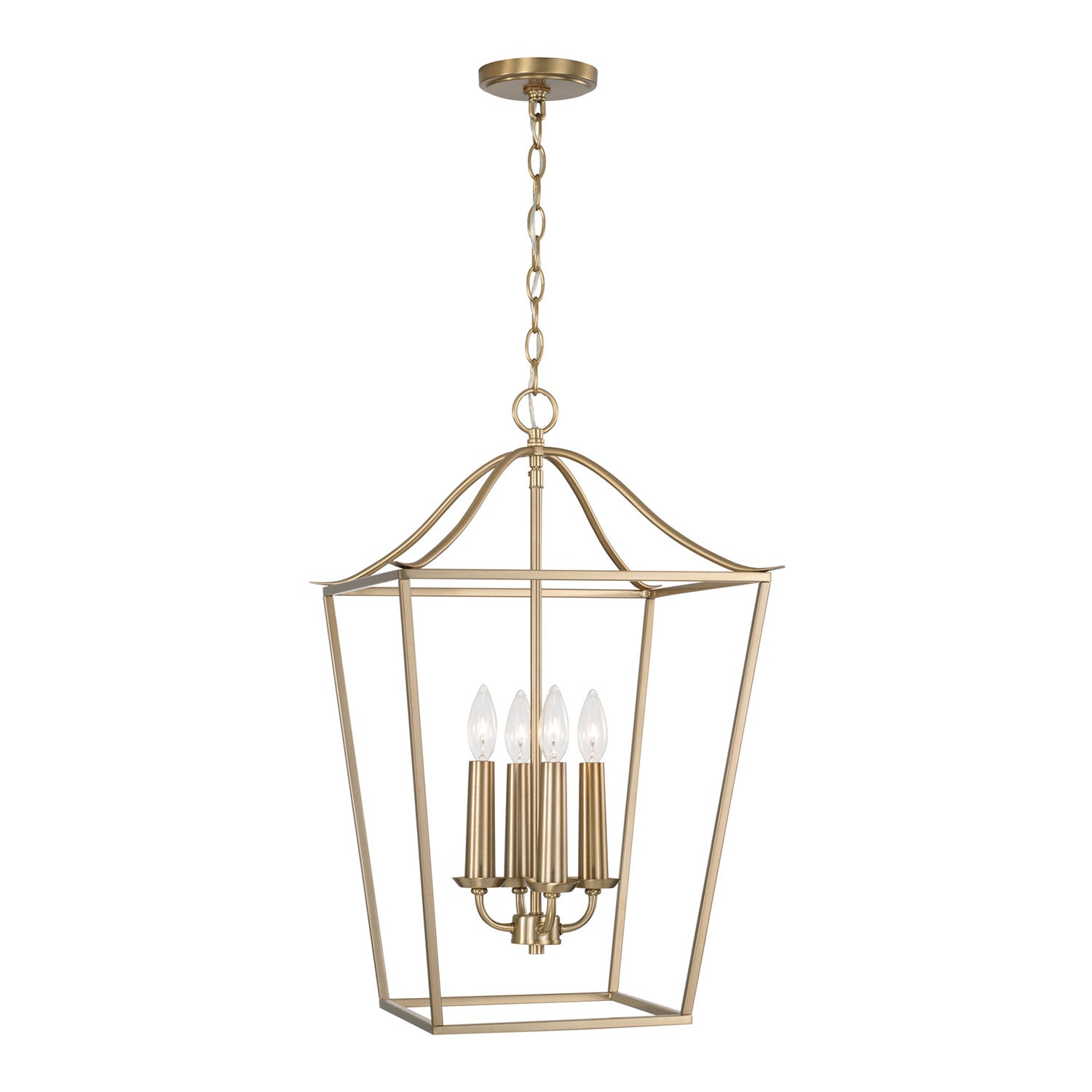 The Eloise Lantern brings farmhouse elegance to any space with its timeless lantern design and warm matte brass finish. Featuring an open cage frame with four candelabra bulbs, this fixture delivers brilliant illumination perfect for foyers, dining rooms, or kitchen islands. The warm matte brass finish adds rustic sophistication that complements both traditional and contemporary interiors. The Eloise lantern combines classic proportions with versatile styling to create a distinctive lighting solution that enhances your space with timeless charm.