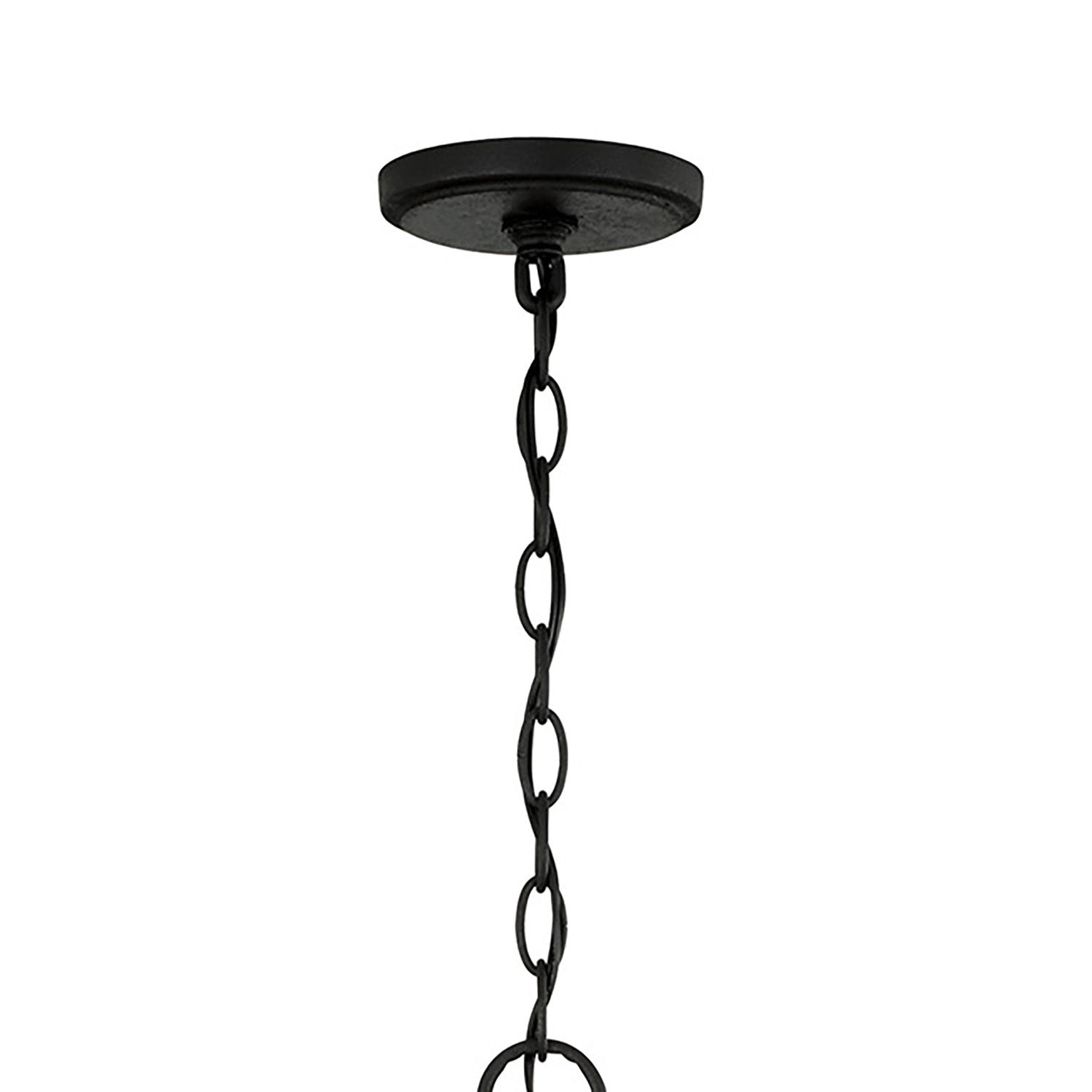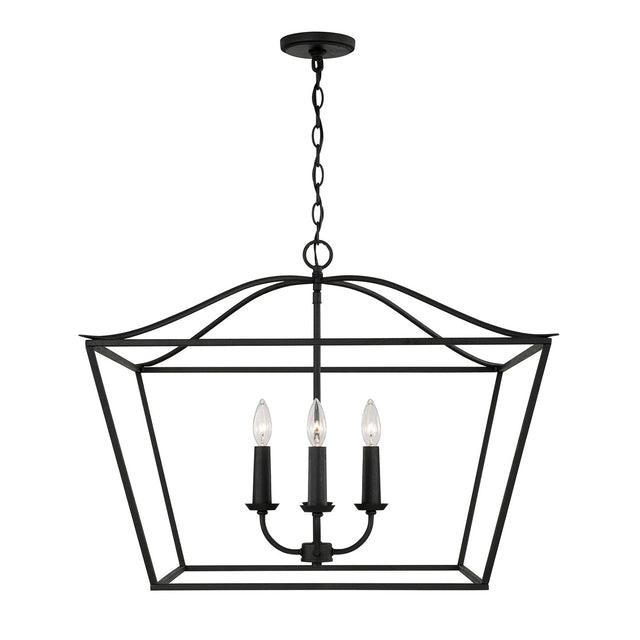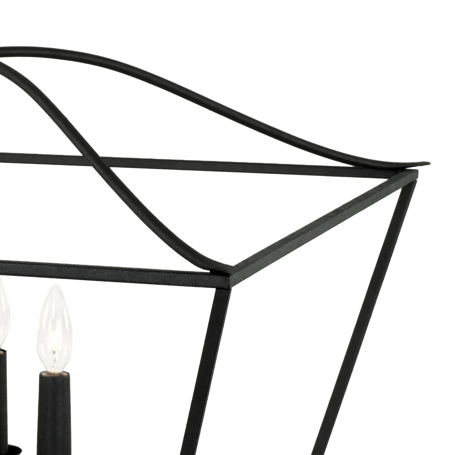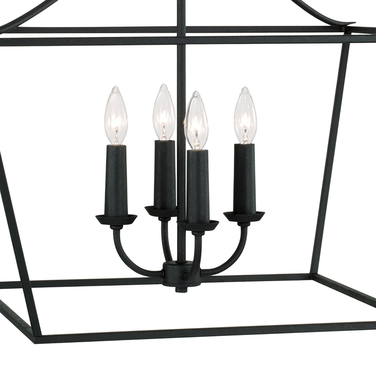 The Eloise Lantern brings farmhouse elegance to any space with its timeless lantern design and textured black finish. Featuring a large open cage frame with four candelabra bulbs, this substantial fixture delivers brilliant illumination perfect for grand foyers, large dining rooms, or spacious great rooms. The black iron finish adds rustic sophistication that complements both traditional and contemporary interiors. The Eloise lantern combines classic proportions with impressive scale to create a distinctive lighting centerpiece that enhances your space with timeless charm.