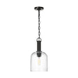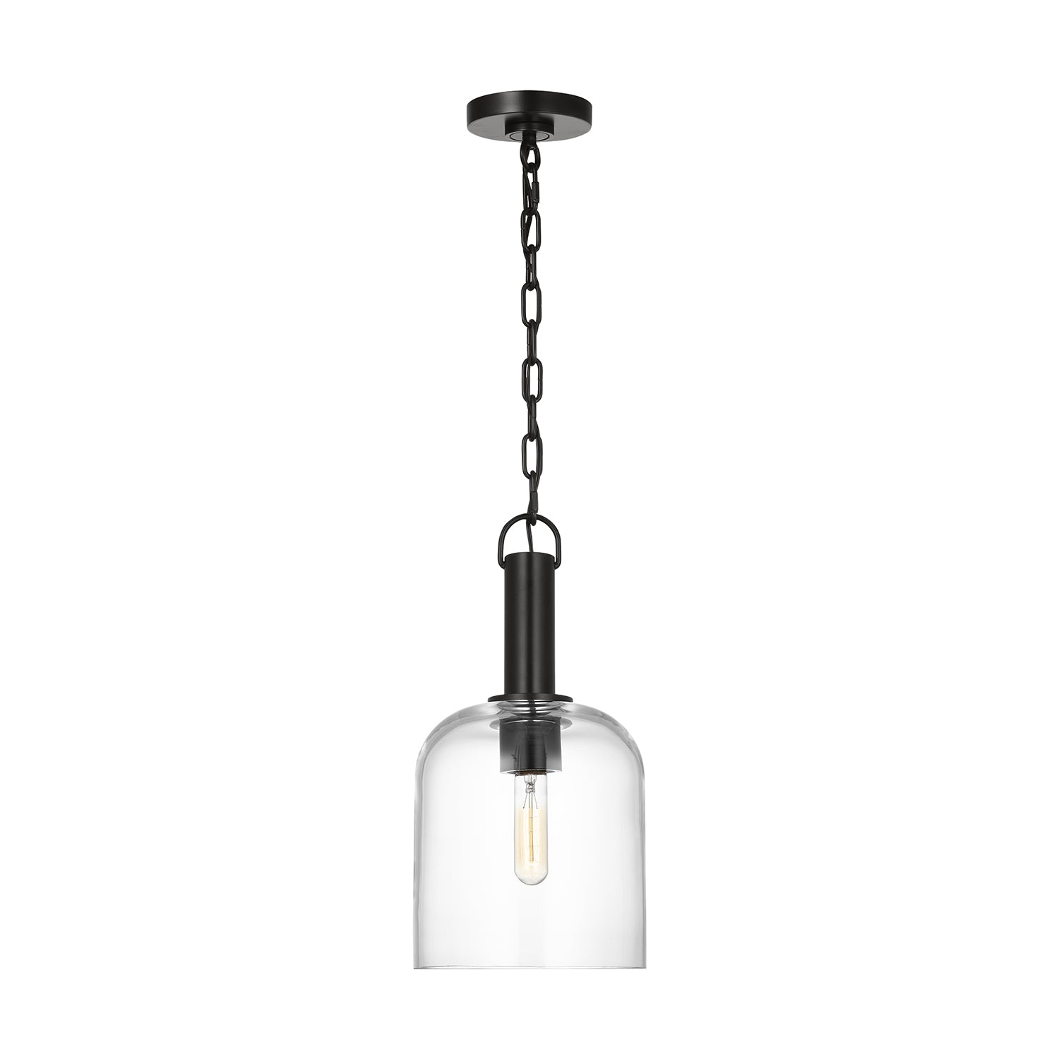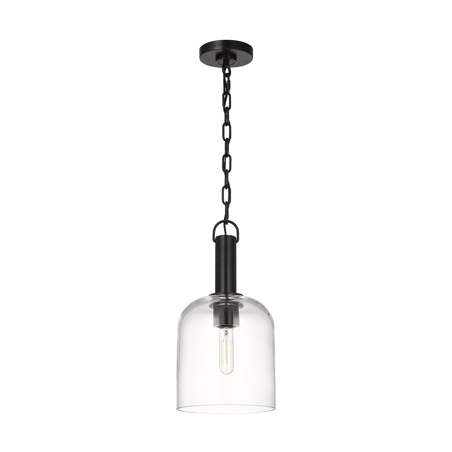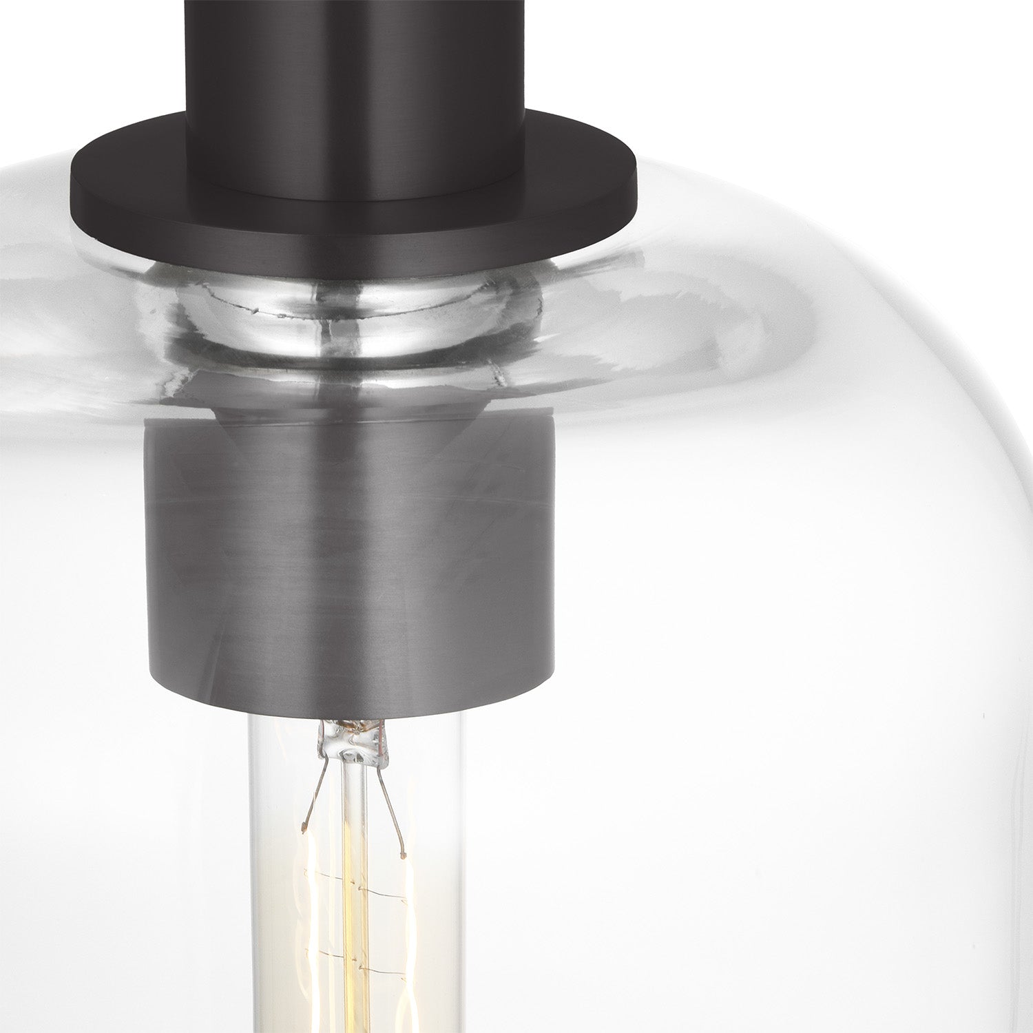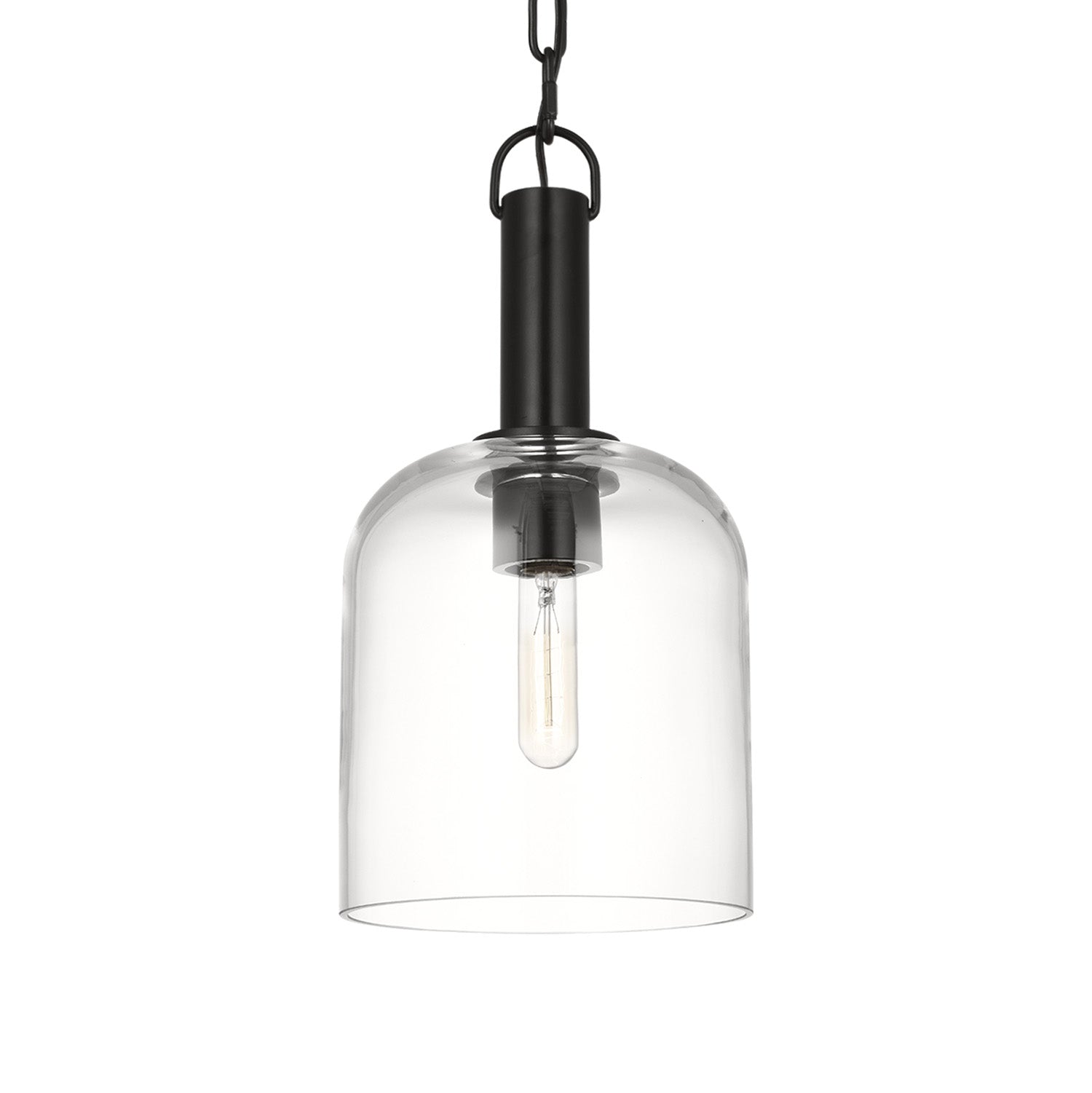The Emrys Pendant exemplifies bold and elegant contrast, reimagining timeless lighting design with a modern edge through its harmonious mix of materials and sculptural presence. This versatile 8" pendant features a thoughtful interplay of curved and linear elements that creates a sophisticated, sculptural silhouette designed to enhance a variety of interiors, perfect for kitchen islands, dining areas, entryways, living spaces, and areas seeking refined pendant lighting with distinctive character. The aged iron finish creates sophisticated depth while the clear glass shade showcases the bulb within for distinctive illumination. With its damp-rated construction, substantial hanging range, and striking design, this expertly crafted pendant elevates any space with refined contemporary elegance and enduring appeal.
