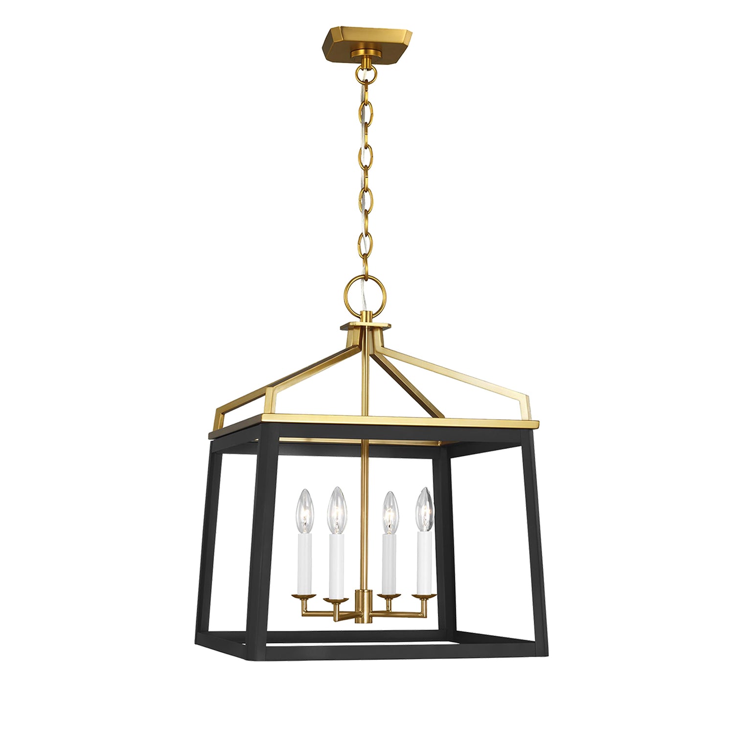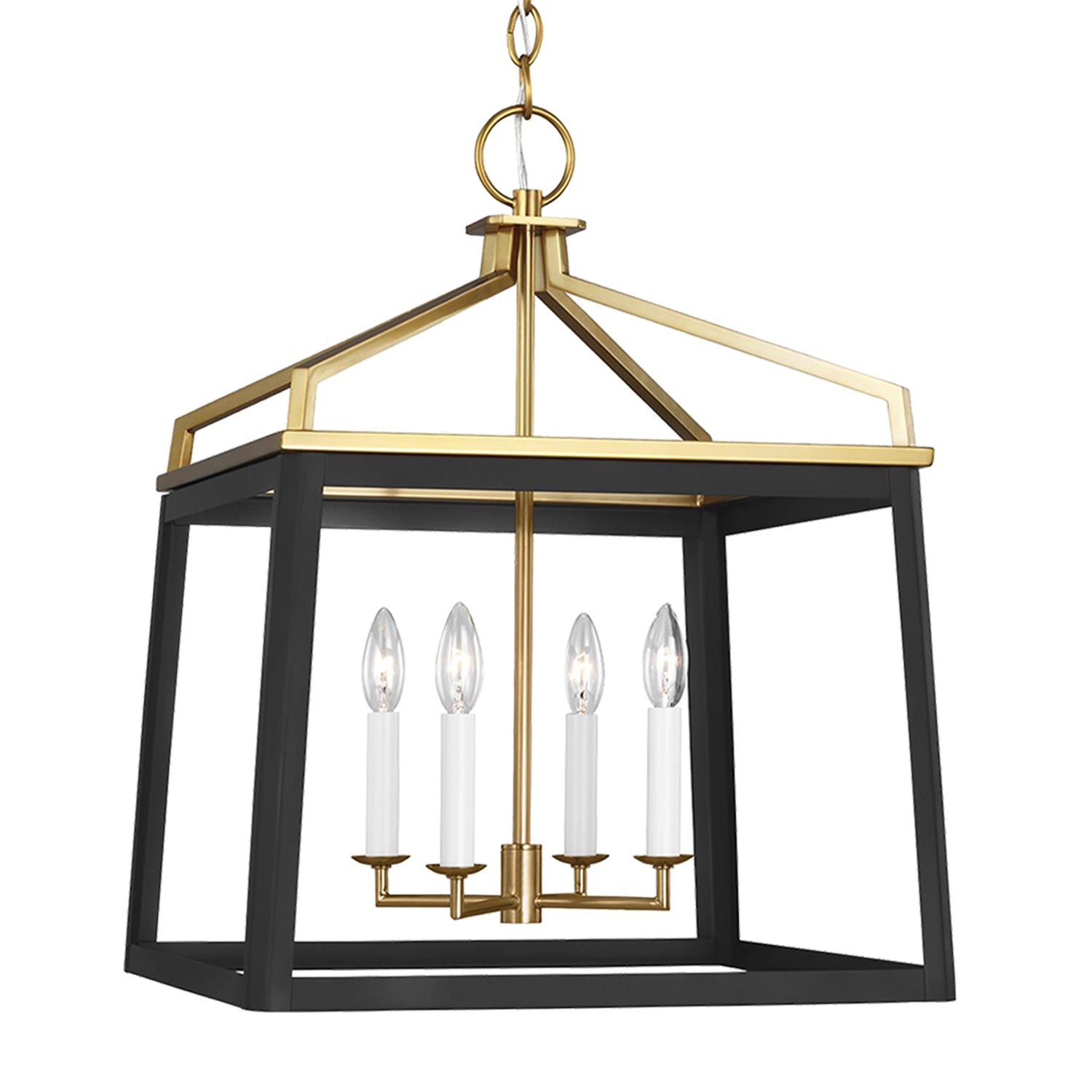 Fillmore Large Lantern Pendant 18", Matte Black and Modern Brass