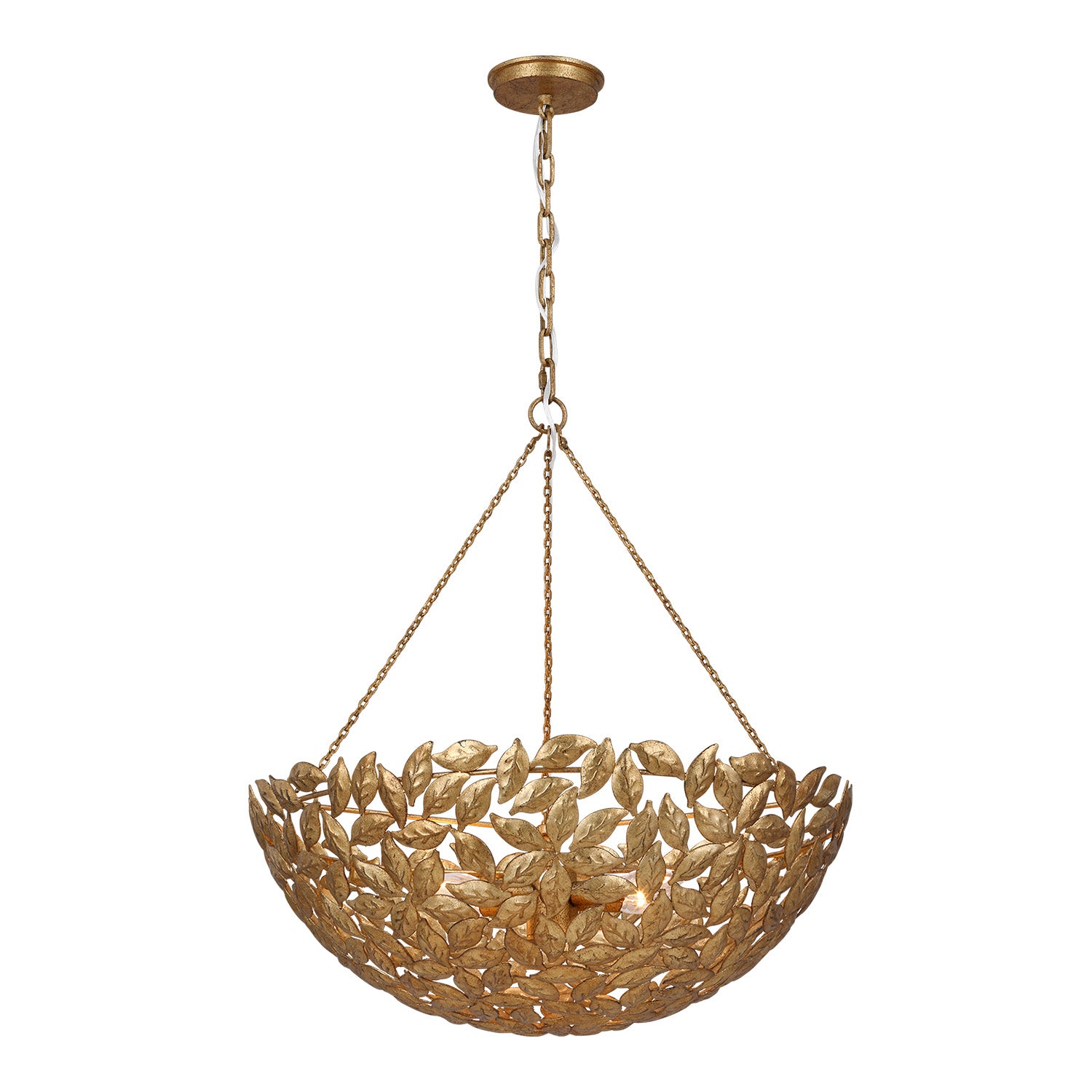The Floren Large Pendant brings vintage-inspired elegance to any space with its elegant leaf motif and graceful bowl silhouette that instantly elevates interiors with classic appeal. This beautifully detailed fixture features meticulous craftsmanship that creates a captivating focal point with timeless sophistication. Perfect for larger dining areas, grand entryways, and spacious living spaces where radiant beauty meets enduring style. The aged gilded brass finish adds warm richness that enhances the intricate leaf detailing, while the classic bowl design provides comprehensive ambient illumination. With its elegant craftsmanship and vintage-inspired design, this pendant brings radiant beauty to any interior.