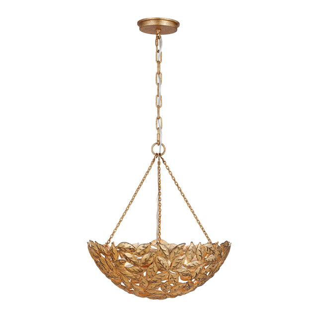 • Classic bowl pendant design enhanced with intricate leaf detailing for captivating visual appeal