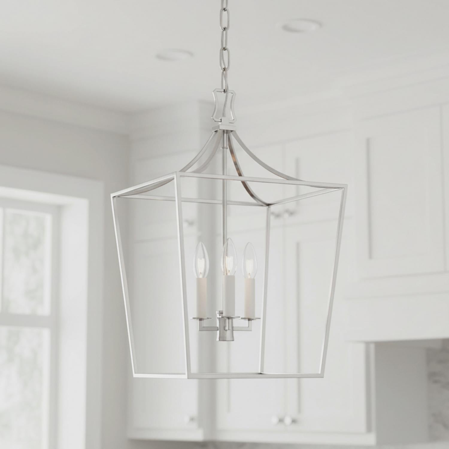 The Grayden Medium Lantern Pendant brings classic charm to contemporary spaces with its timeless design and open construction that creates beautiful ambient illumination. This expertly crafted fixture captures the essence of traditional lantern styling while offering modern functionality, featuring clean lines and an open framework that showcases the inner lighting while maintaining an airy, unobstructed feel. Perfect for smaller dining areas, breakfast nooks, and cozy entryways where classic design meets modern living. The polished nickel finish adds bright sophistication that complements both traditional and contemporary interiors while the versatile 13" scale creates balanced presence for medium-sized spaces. With its enduring appeal and quality construction, this lantern pendant delivers the perfect balance of classic style and contemporary performance.