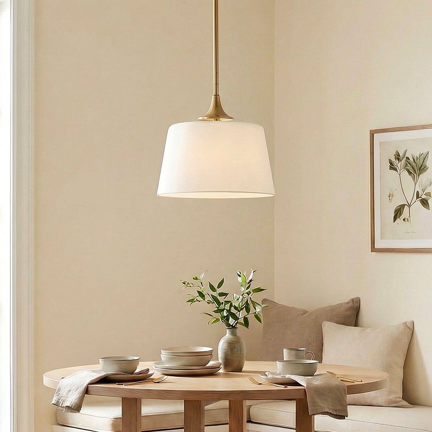 The Harper Pendant light brings contemporary elegance to any space with its graceful design and sophisticated aged brass finish. Featuring a large opal glass shade with adjustable hanging rods and chain, this fixture delivers soft, diffused illumination perfect for kitchens, dining areas, or bedrooms. The aged brass finish adds subtle sophistication that elevates any space, while the refined proportions provide beautiful ambient lighting. The Harper combines graceful curves with sophisticated styling and can be converted to a semi-flush for lower ceilings, creating a distinctive lighting solution that enhances your space with refined sophistication.
