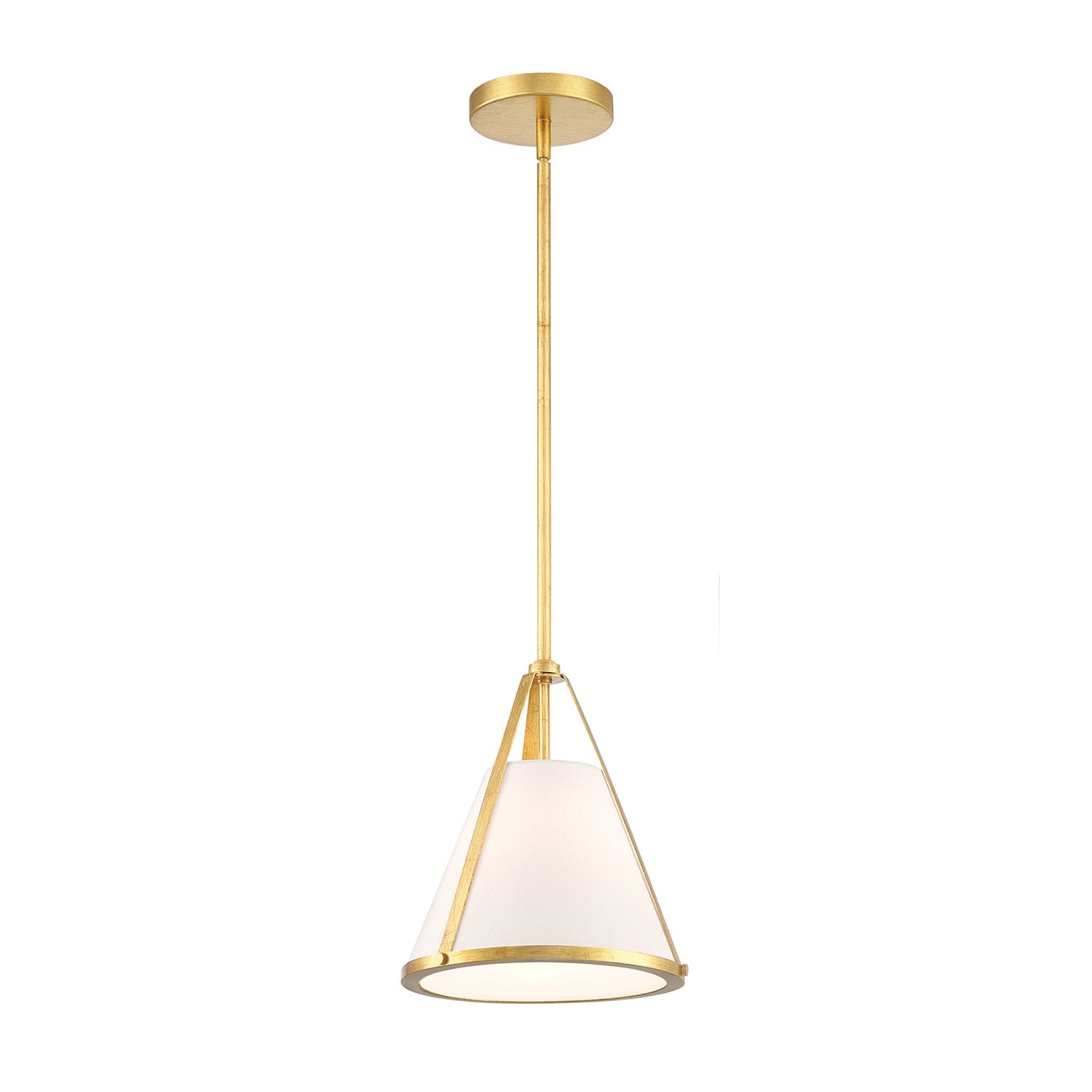The Hoyt Small Conical Pendant 9.5", Antique Gold redefines traditional pendant lighting with its sophisticated balance of structured minimalism and refined details. This distinctive fixture showcases an innovative double white silk shade construction, where the interior shade is elegantly trimmed by a sculptural ring that secures a glass diffuser. This thoughtful engineering creates a clean, architectural aesthetic with effortless elegance, ensuring the light source is beautifully concealed while providing a warm, even glow. The radiant antique gold finish introduces luxurious warmth that complements diverse interior aesthetics, from classic to contemporary transitional. With its versatile design and perfectly balanced proportions, this small-scale pendant transforms your space with understated sophistication.