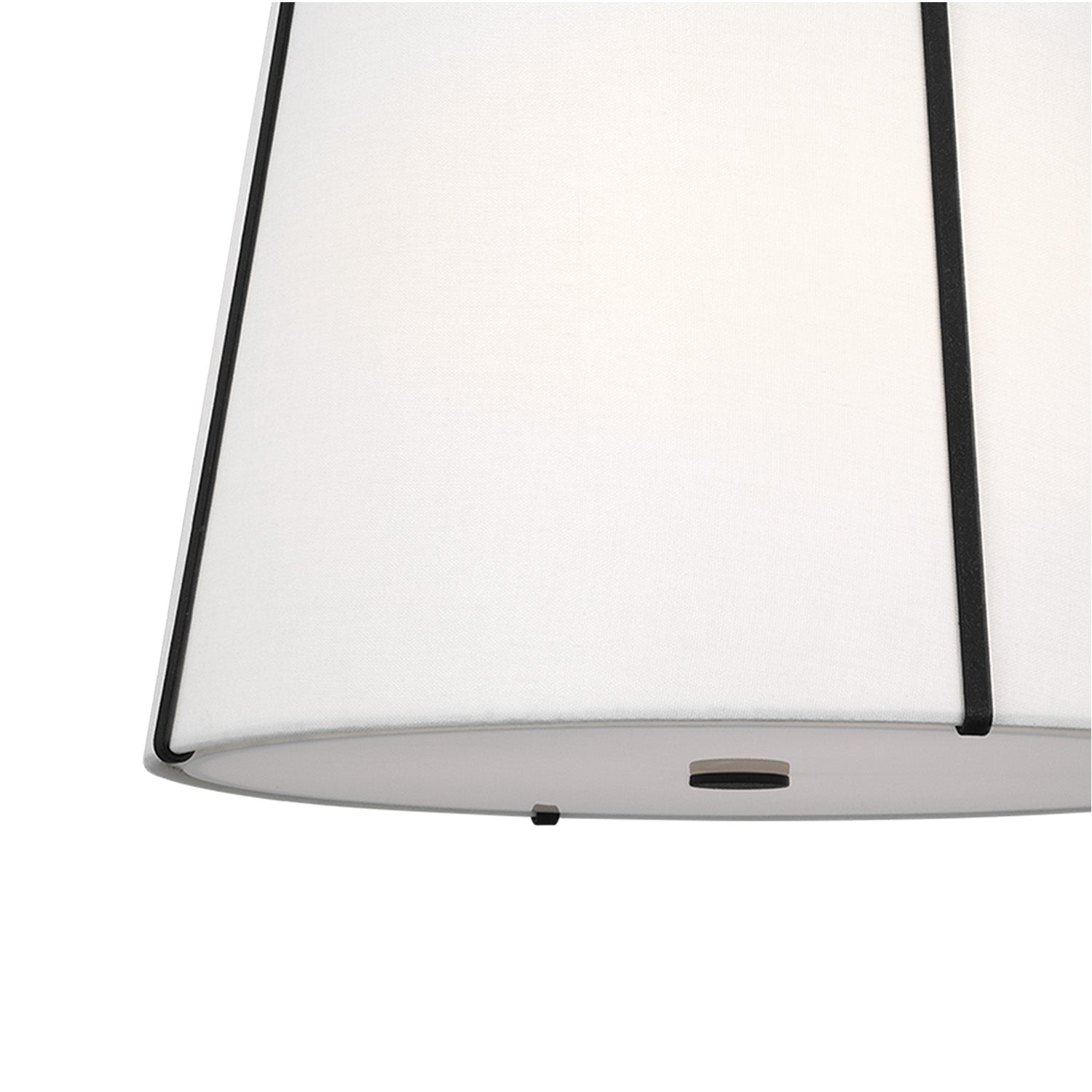 • White linen barrel shade provides comprehensive, diffused illumination and contemporary elegance