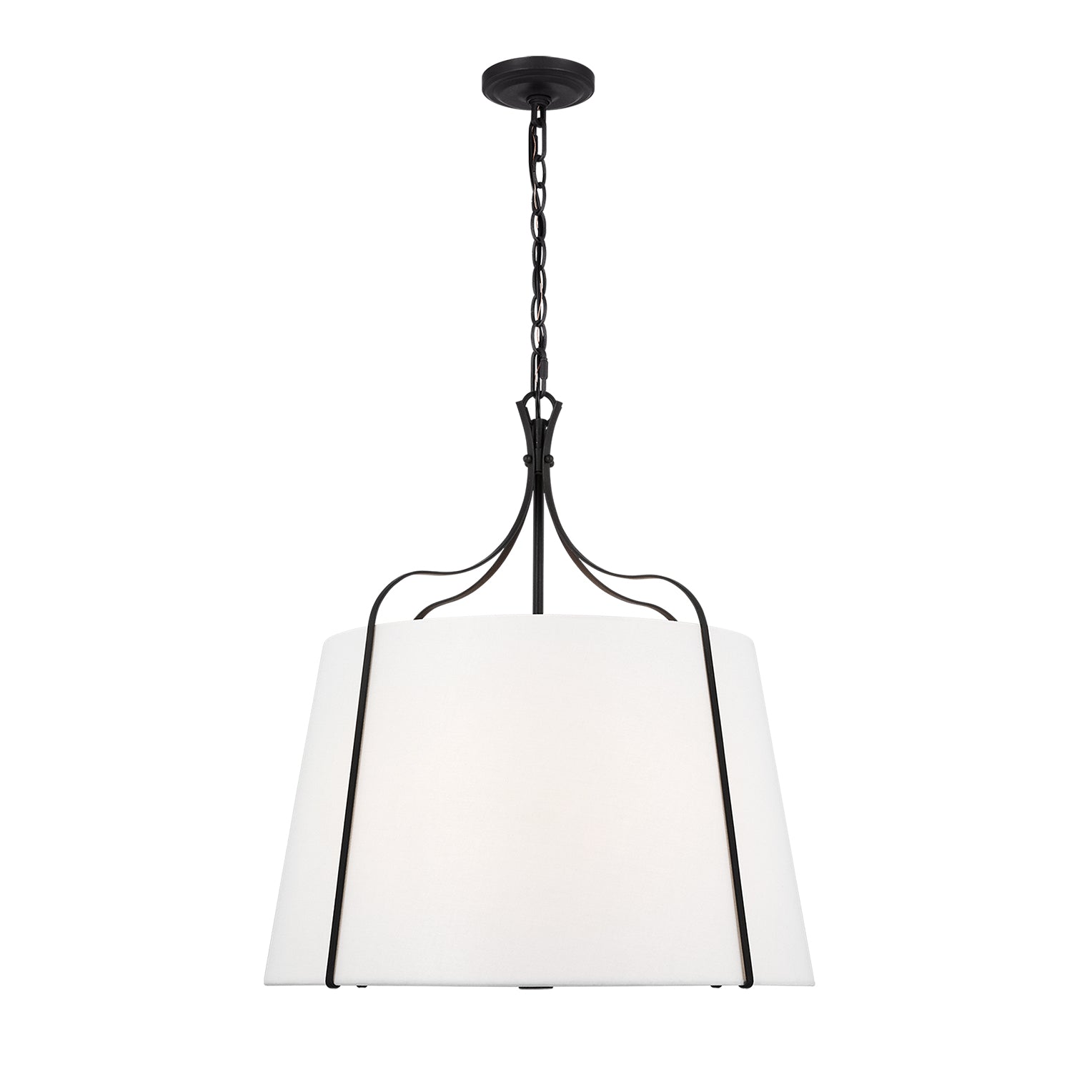 The Isleton Large Pendant makes an immediate impression in any space with its beautifully structured frame ensconced in a crisp white linen shade. This thoughtfully designed fixture offers a modern twist on classic lantern design, featuring clean lines and quality construction that maintains an open, airy feel while delivering sophisticated illumination. Perfect for grand dining areas, large kitchen islands, and spacious living areas where contemporary style meets timeless appeal. The aged steel finish adds industrial character that complements the fresh linen shade while the structured frame creates commanding visual interest. With its impressive proportions and refined materials, this pendant brings polished sophistication to any interior.