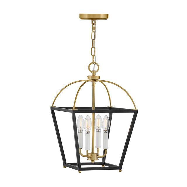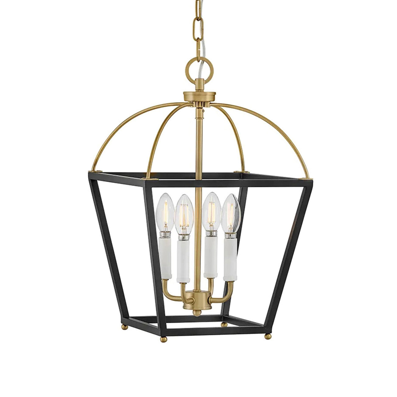 Langford Medium Lantern Pendant 12", Black and Satin Brass