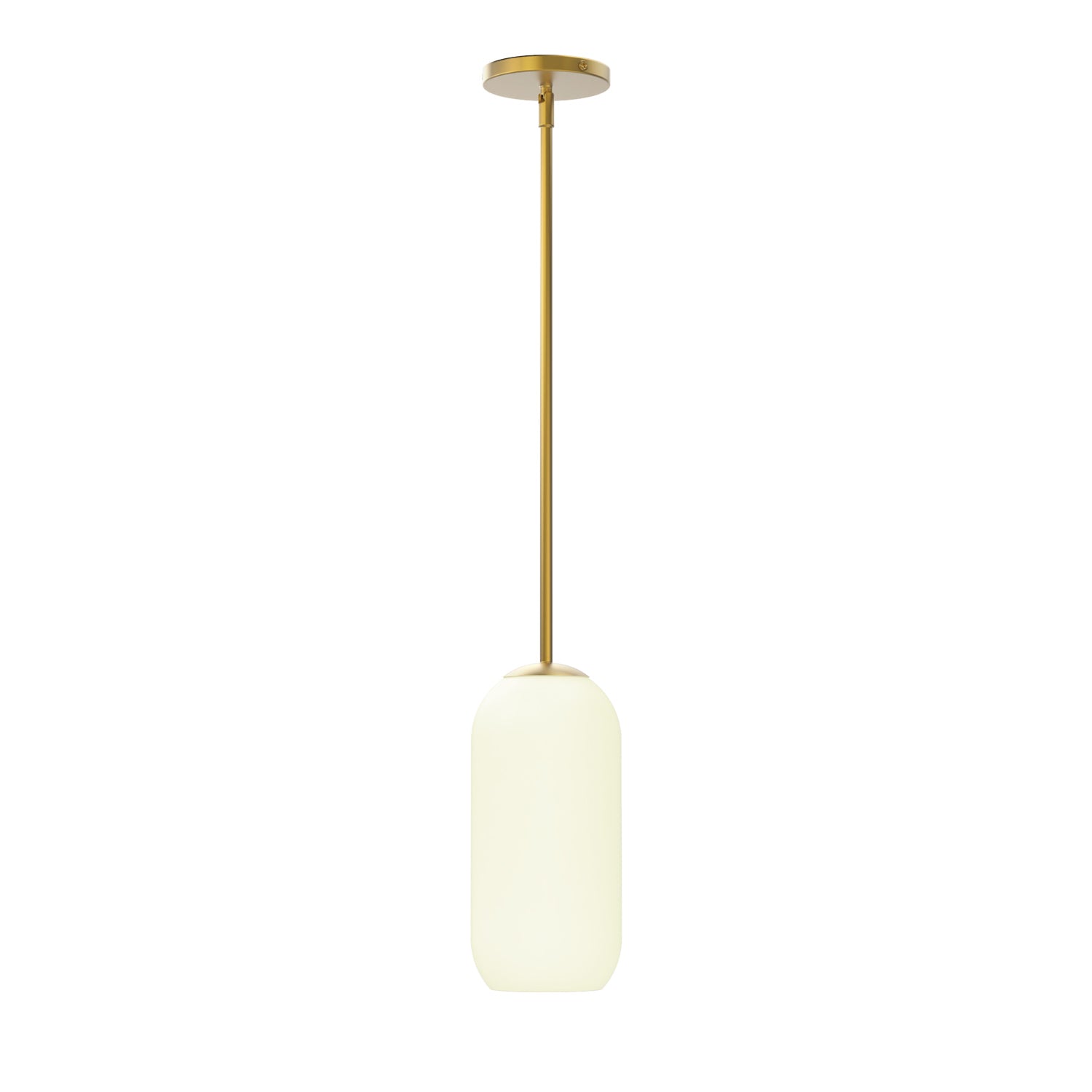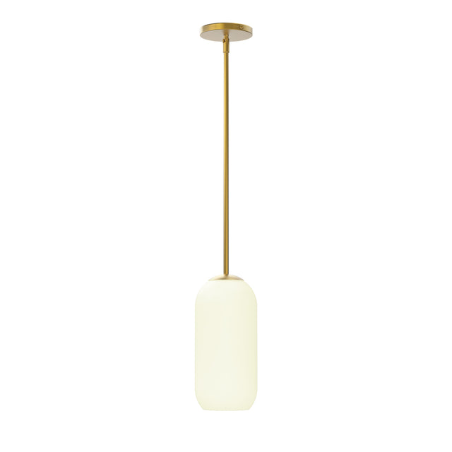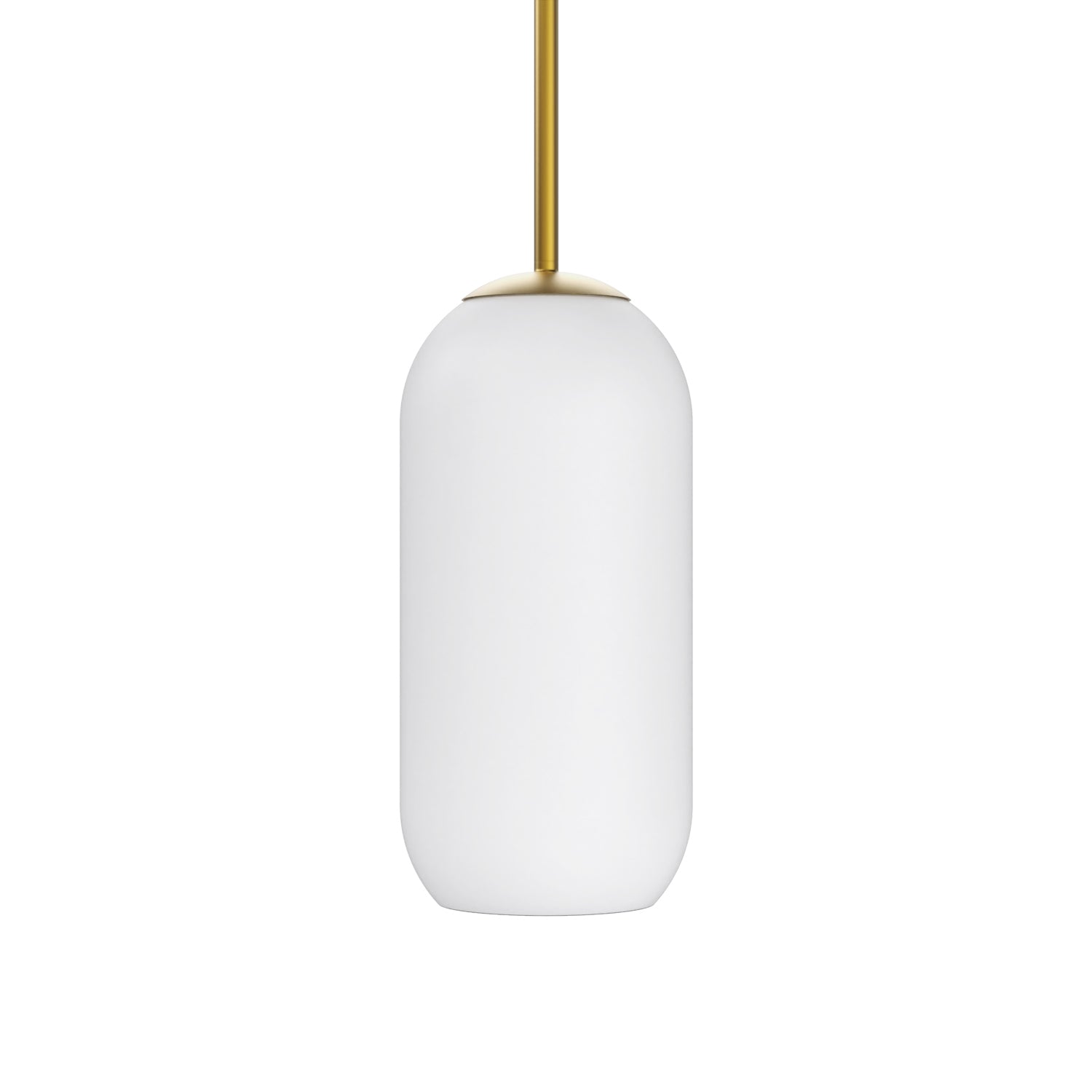 The Liv 11" Opal Capsule Pendant Light is a beautiful, modern interpretation of the classic pendant ceiling light. Features a frosted, pill-shaped shade suspended by adjustable down rods and a circular canopy- all in a rich, warm satin brass finish. This updated fixture pairs superior materials with exceptional style, for a look that is both timeless and chic. Ideal in hallways with standard or tall ceilings, above a small table, or paired up over a kitchen island.