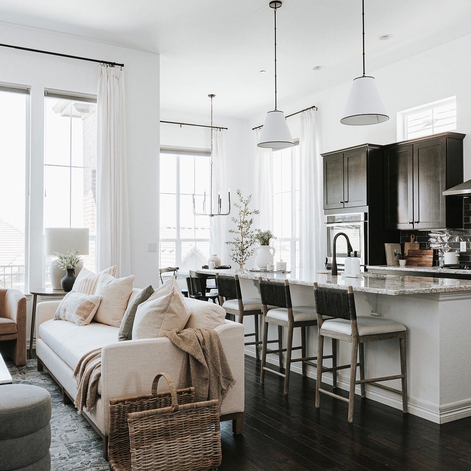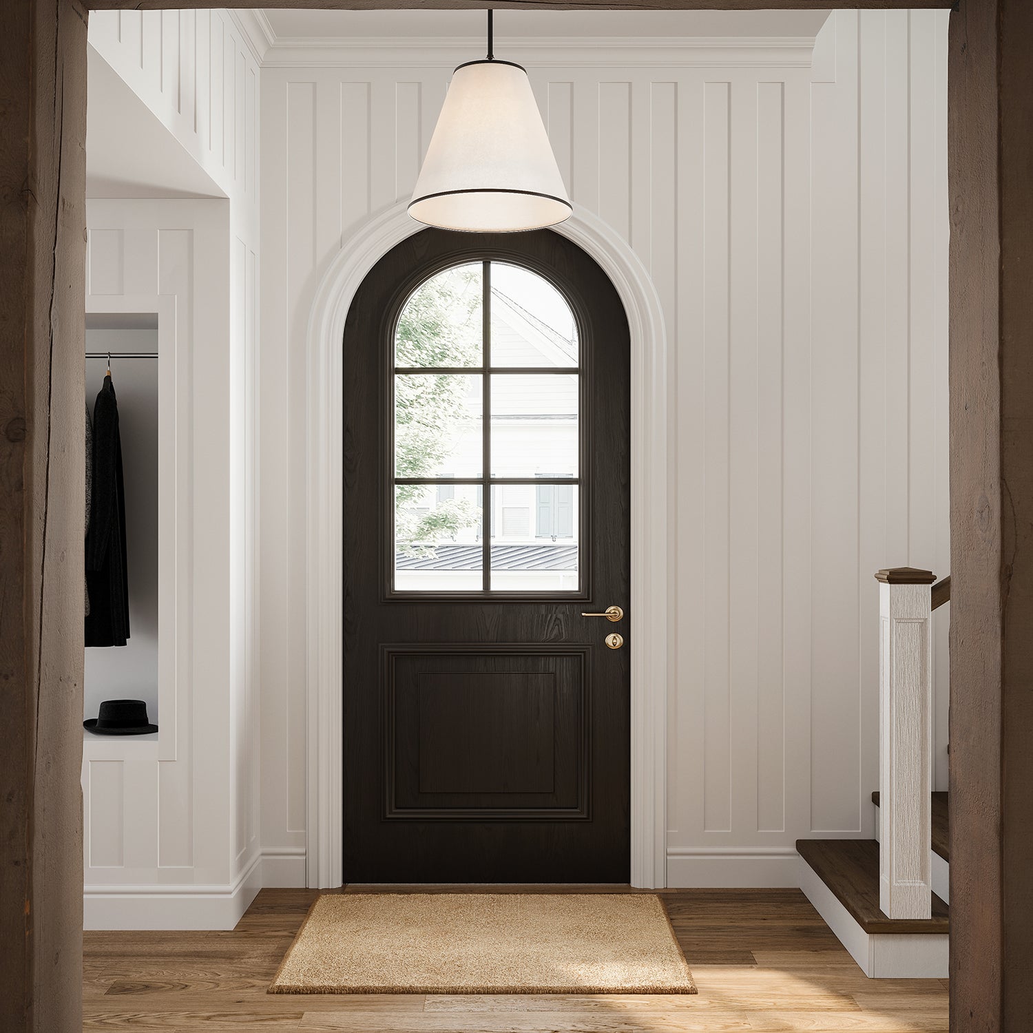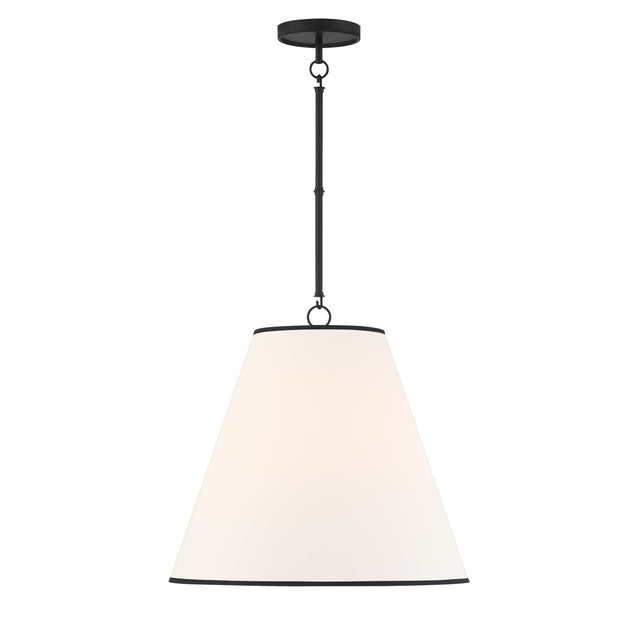 The Luca Large 18" Conical Pendant is comprised of a stunning matte black metal body paired with a dramatic, tapered white fabric shade with black detailing. While boasting a classic tapered drum pendant silhouette, the Luca provides updated, smart details- perfectly executed contrast with black trim at the edges of the shade, and adjustable hanging height by way of six-inch rods and decorative couplers. With a traditional shape and modern finishes and textures, this pendant works well in transitional, traditional, or modern spaces. The gorgeous fabric shade is optimal for overhead lighting, helping to diffuse and soften the light from any bulb. The Luca series of fabric pendant lights are perfect in sets above dining room tables, kitchen islands or as a single light in a bedroom, entryway, or kitchenette.