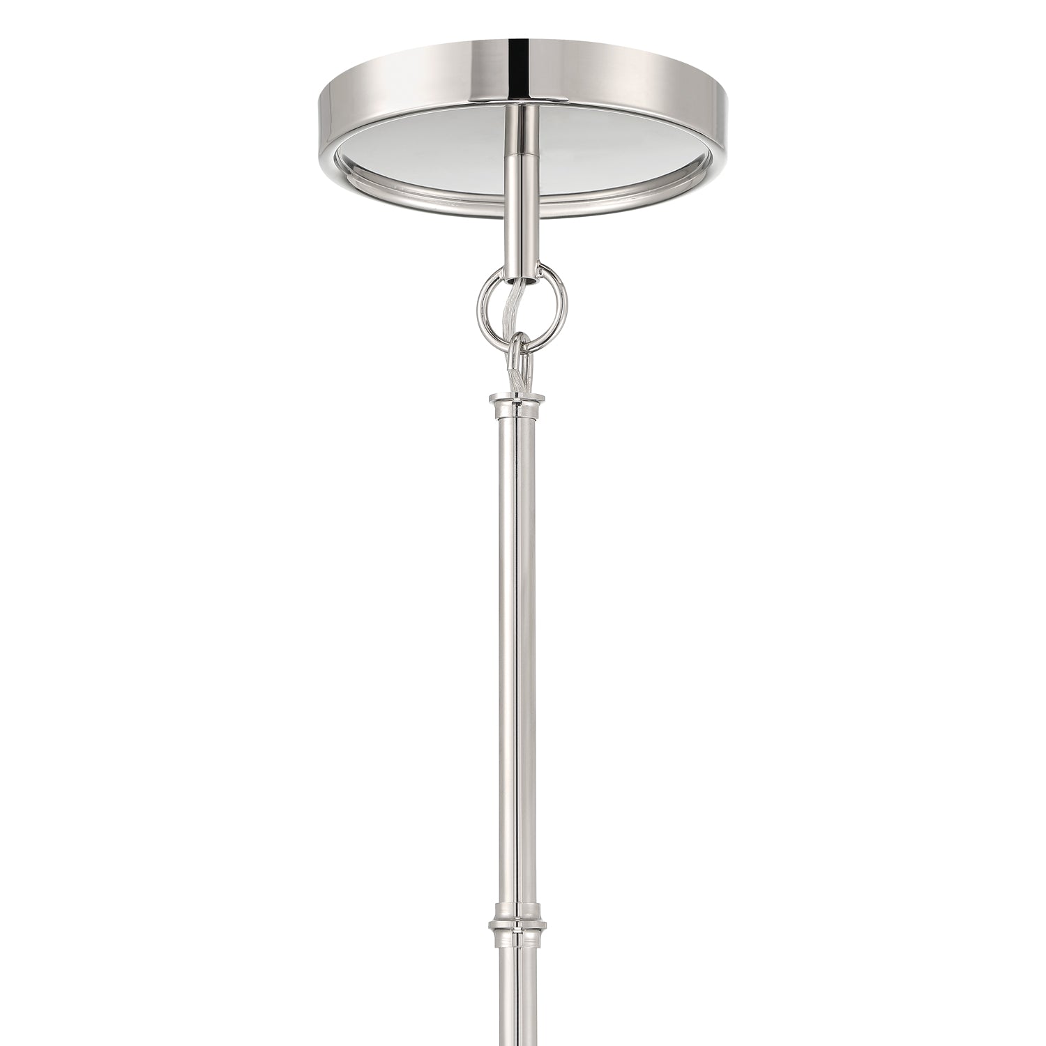 • Finished in gleaming polished nickel, the pendant is suspended from a circular canopy and adjustable matching down rods