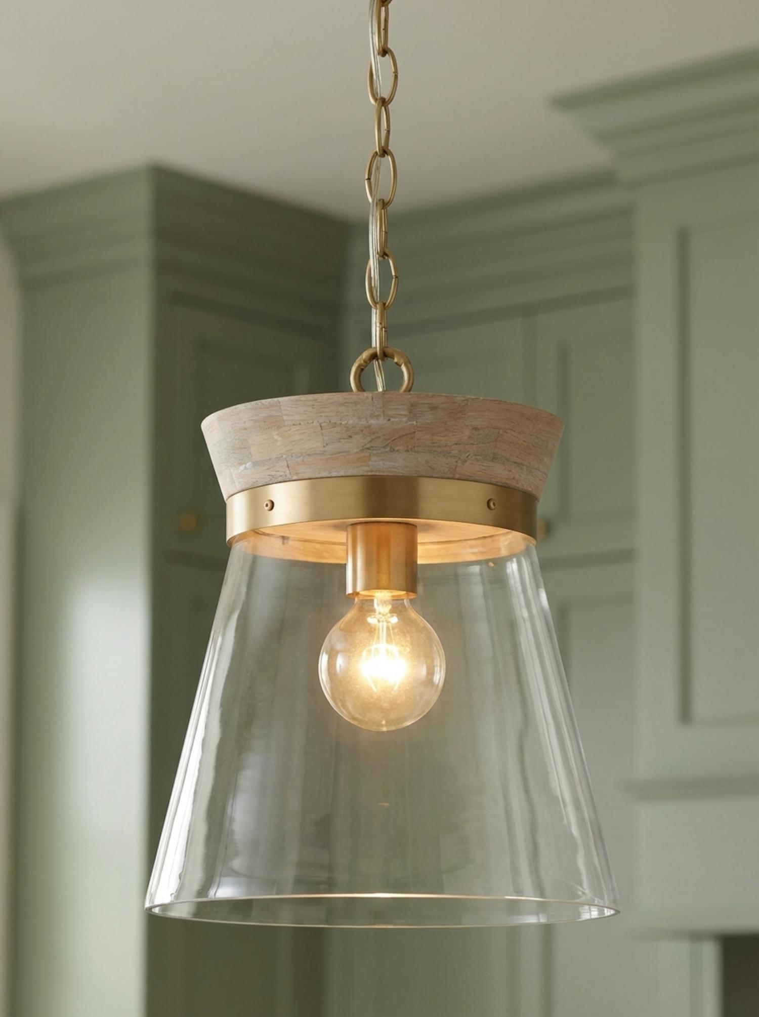 The Maren Pendant brings modern, rustic luxury to any space with its sleek silhouette and soft whitewash wood finish. The warm matte brass complements the whitewash wood to create a gentle contrast, while the clear glass shade delivers brilliant, unfiltered illumination perfect for kitchen islands, dining areas, or contemporary spaces. Featuring clean geometric lines enhanced by natural wood texture, this versatile fixture combines organic materials with refined metalwork. The whitewash finish combined with matte brass creates luminous warmth that elevates any space with contemporary sophistication. The Maren pendant combines modern craftsmanship with premium materials to create a distinctive lighting solution that enhances your space with refined elegance.