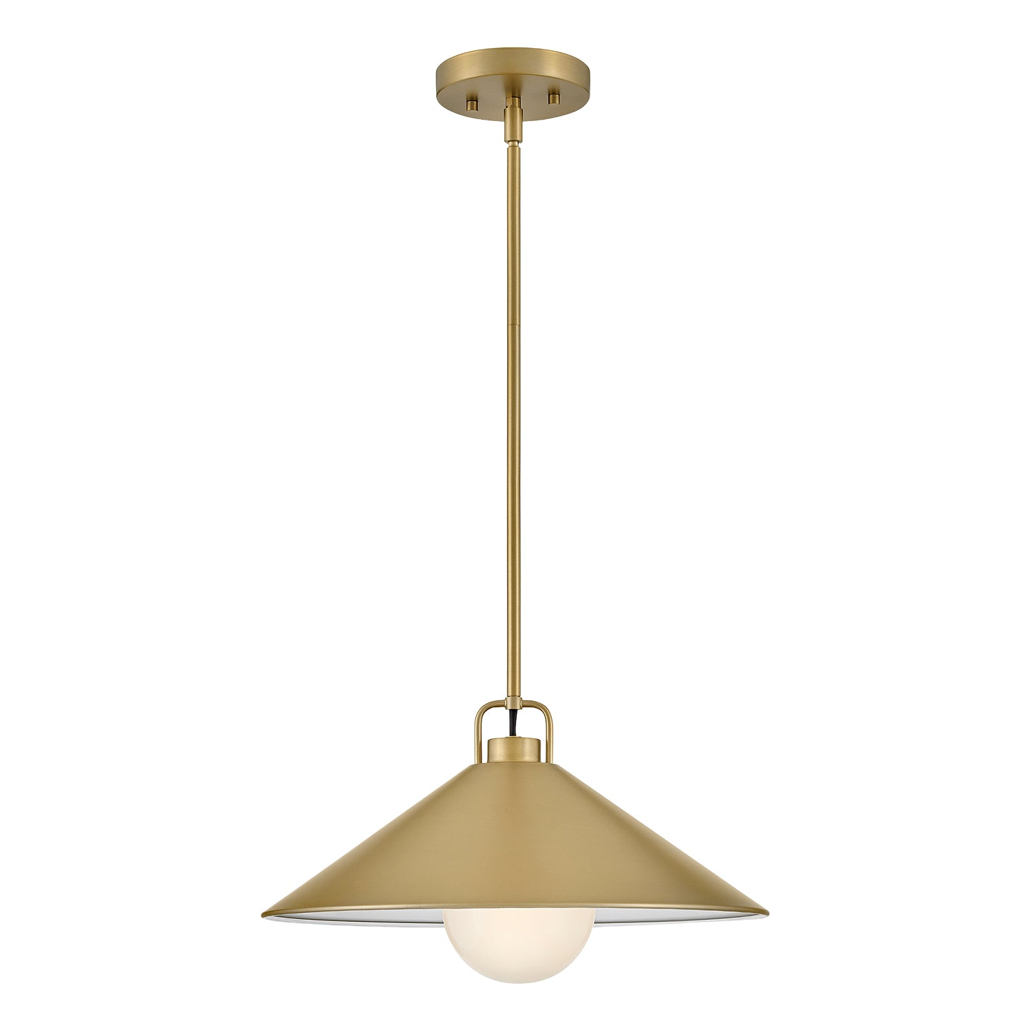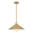 • Modern single pendant with a wide, tapered brass metal shade